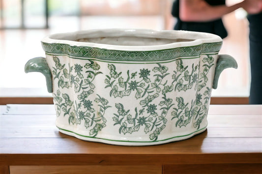 Ceramic Green Parrot Palm Willow Double Planter 33cm