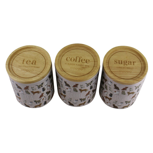 Ceramic Cat Design Tea,Coffee & Sugar Canisters