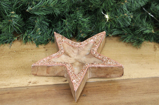 Copper Embellished Wooden Star Bowl