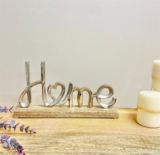 Metal Silver Home Ornament On A Wooden Base