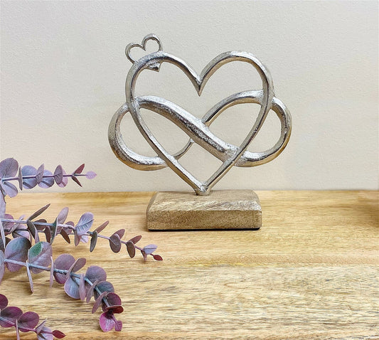 Metal Silver Entwined Hearts On A Wooden Base Large