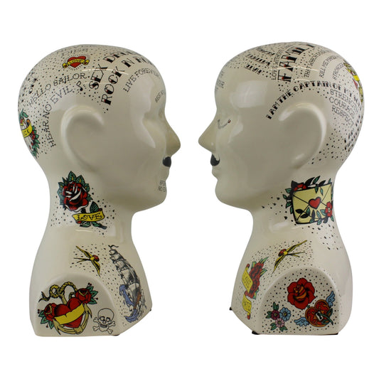 Ornamental Ceramic Phrenology Bookends