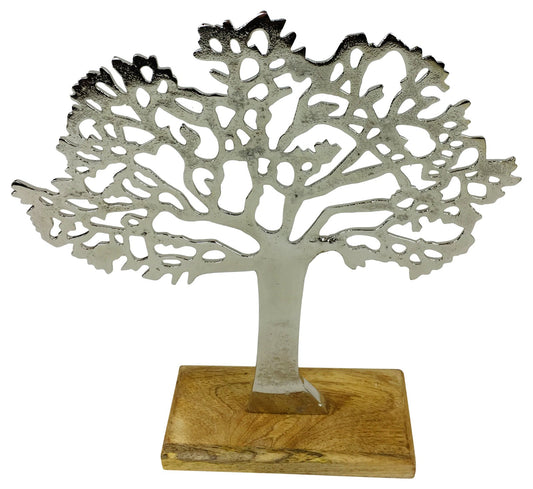Silver Metal Tree On Wood Base