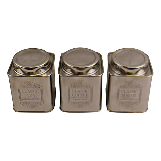 Silver Metal Tea, Coffee & Sugar Storage Tins