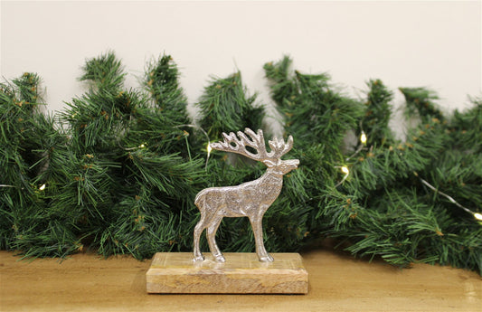 Silver Reindeer On Wood Base Large
