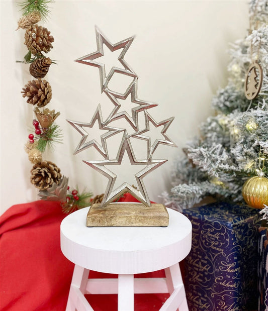 Silver Metal Stars On Wood Plinth