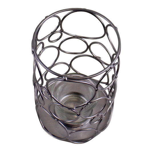 Small Silver Metal Abstract Design Candle Holder