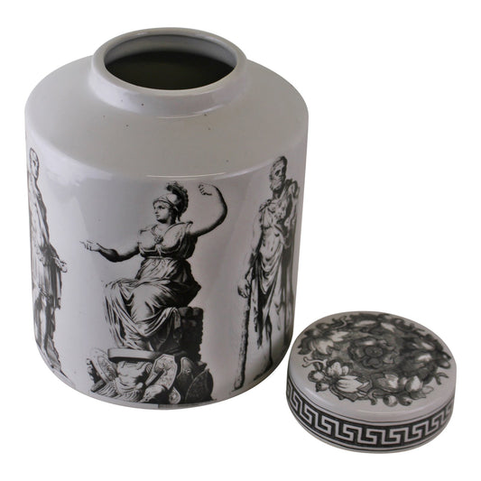 Small Round Grecian Style Porcelain Jar, Grecian Pottery