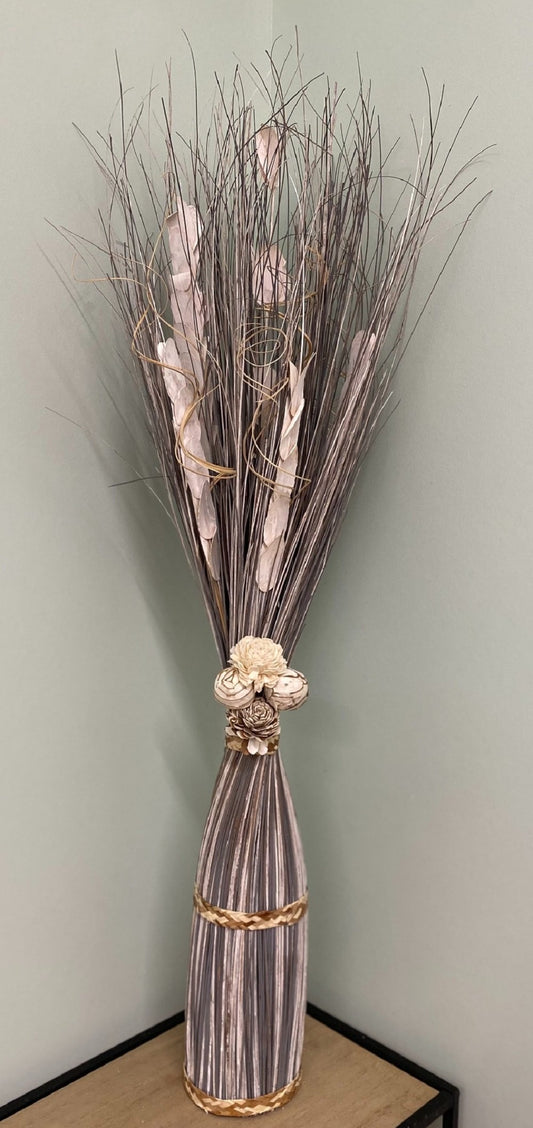 Twisted Stem Vase With Dried Brown & Cream Flowers