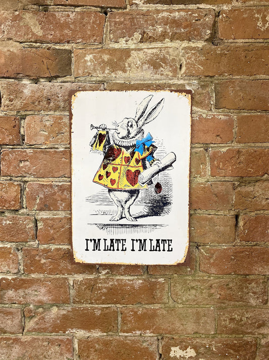 Vintage Metal Sign - Alice In Wonderland - I'm Late, White Rabbit