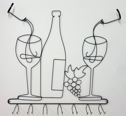 Wall Mounted Black Wire Wine Bottle & Glass Holder