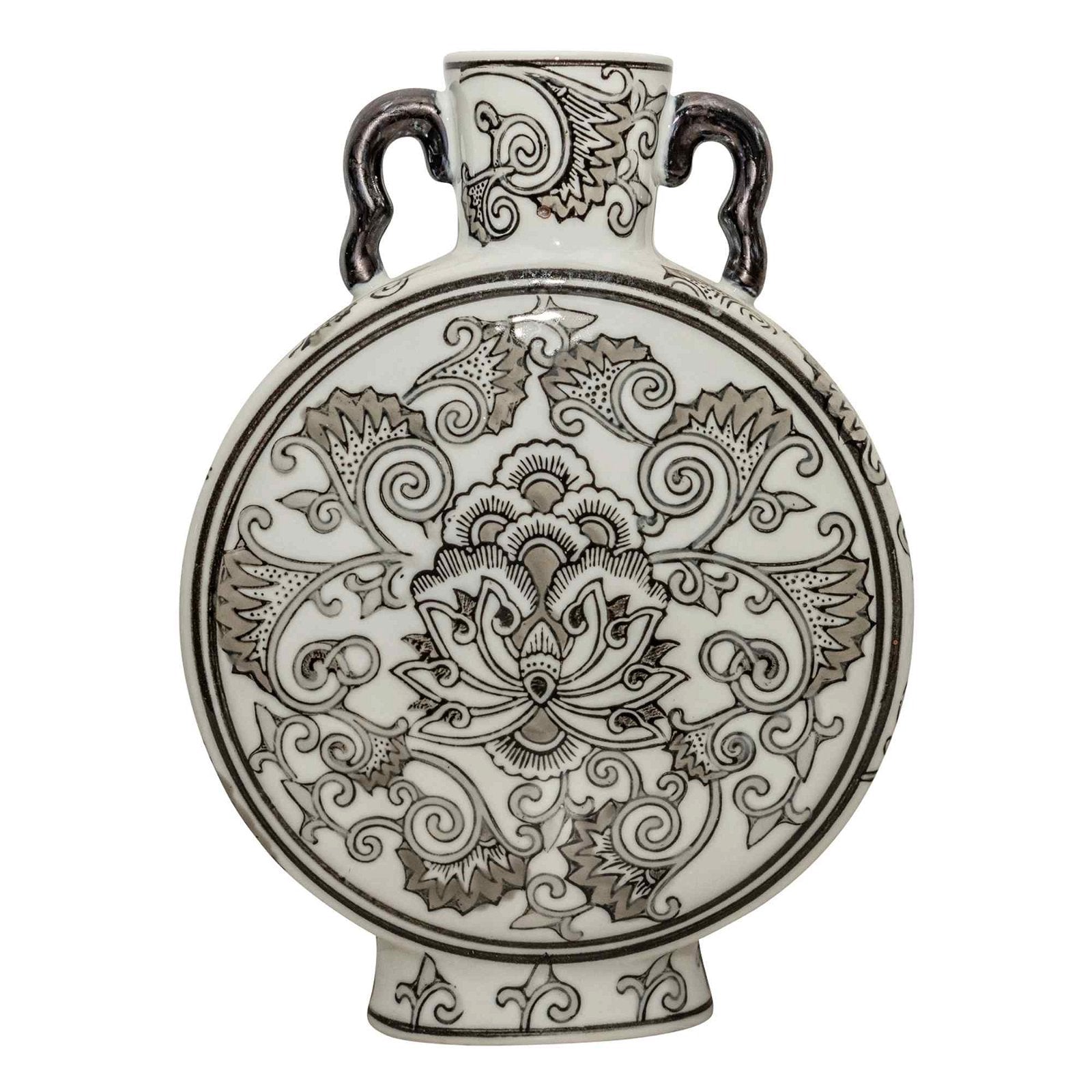 This unusual hand painted floral style bottle vase with handles could add that Asian inspired feel to a contemporary setting. The overall size of this vase is H31.5cm x W23.5cm x D7cm, It has 6cm opening at the top of this vase. Overall measurements: D31.5 x H23.5 x W7cm