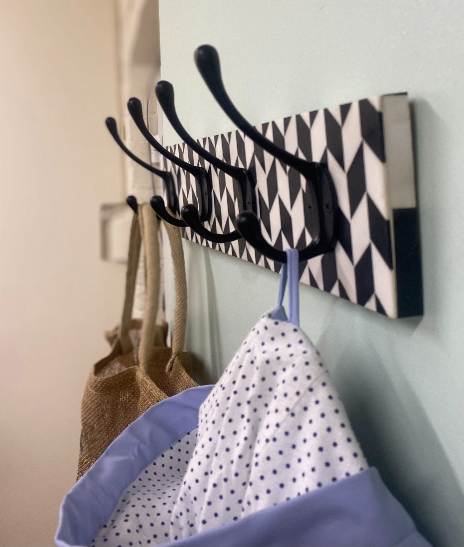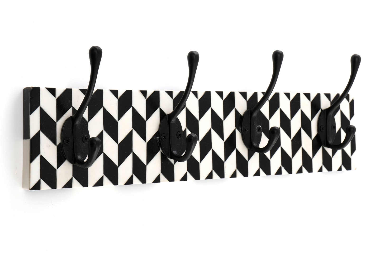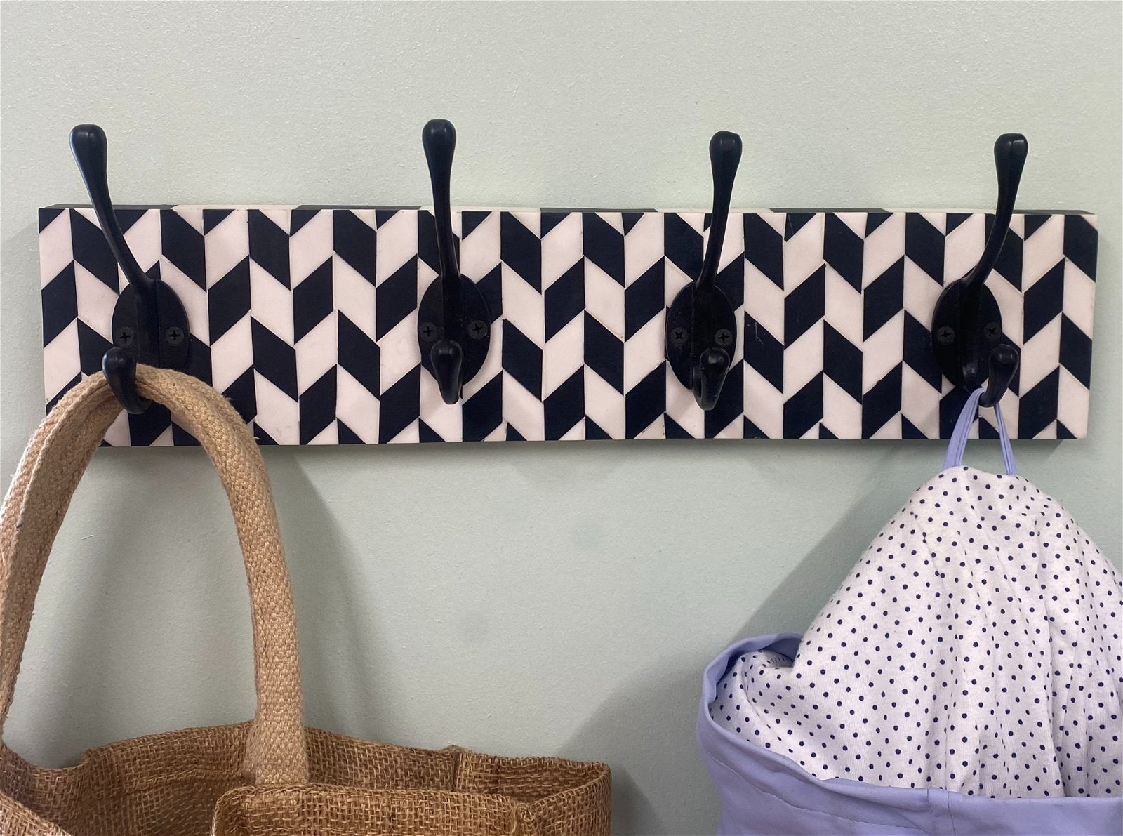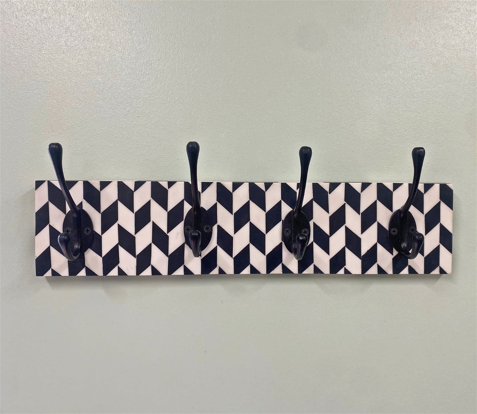 Black Coat Hooks On Black And White Plaque