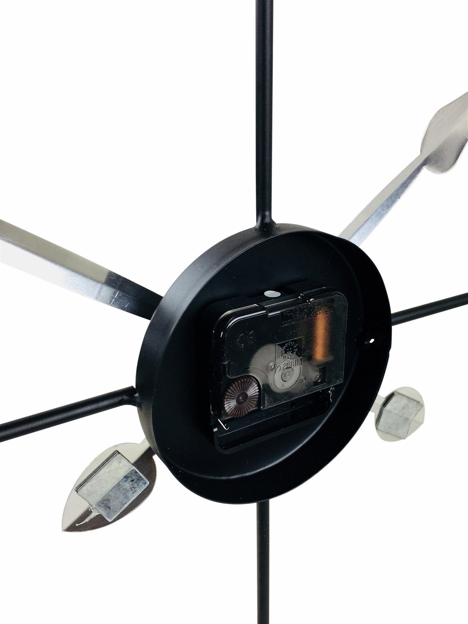 The clock boasts a skeleton design which gives the product a minimalist look. The clock has one mounting bracket on the back to secure the clock. Measurements: W88cm D3.5cm H88cm. The large hand is 42cm in length. Requires 1 x AA Battery, not included. The clock utilizes quartz movement. SKU: CL1800A