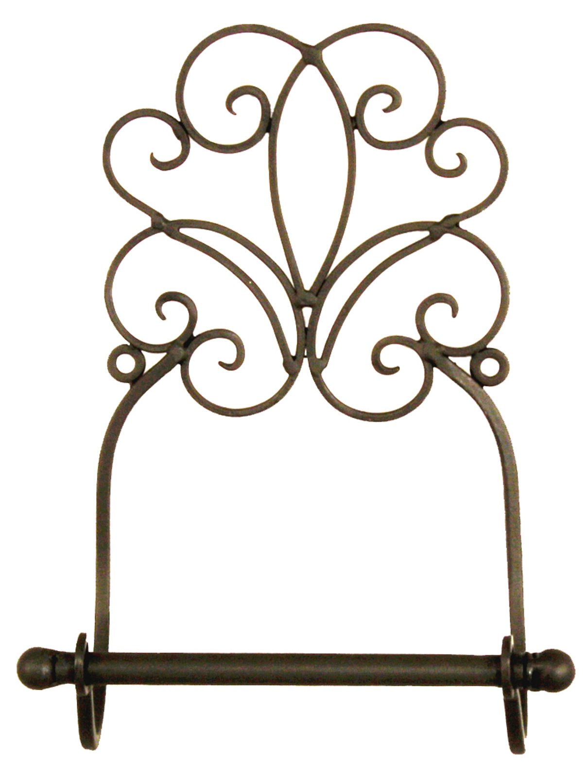 Part of our shabby chic bathroom range, this wall hanging metal toilet roll holder features a scroll design to the top. Made of metal with a distressed paint finish. The toilet roll holder has 2 fixings for wall hanging. Measurements: 9.5 x 22 x 16.5cm