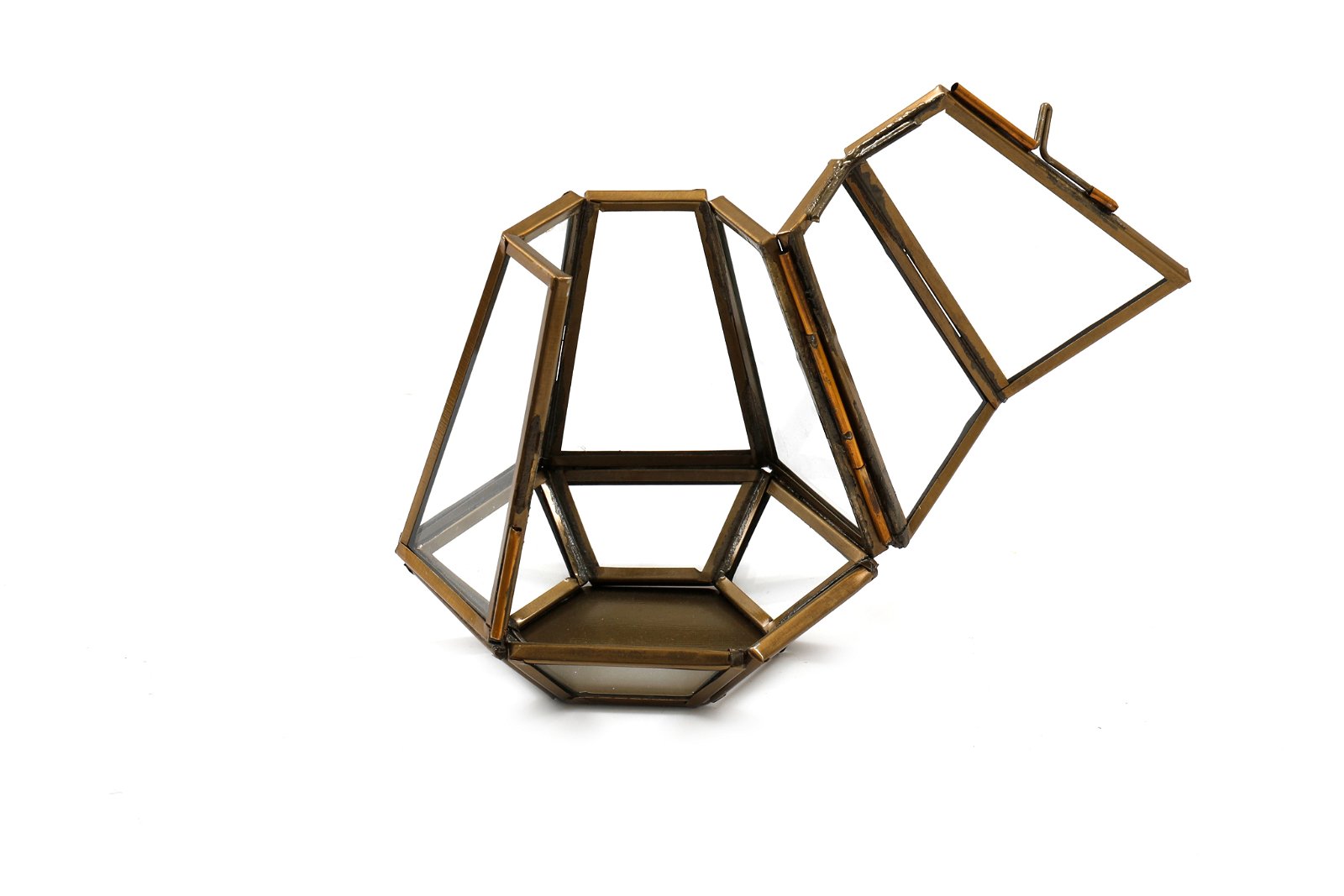 Bronze Metal and Glass Tea Light Holder, a beautiful and elegant decor piece that is designed to hold a single tea light. It is made of high-quality bronze metal and features a clear glass holder for the candle. The bronze finish gives it a rustic and antique look, making it a perfect addition to any home decor style. The glass holder is made of clear, high-quality glass that allows the candlelight to shine through, creating a warm and cosy ambiance. The holder is designed to fit a standard-sized tea light candle, which can be easily replaced when it burns out. Overall, the Bronze Glass Tea Light Holder is a versatile and stylish decor piece that adds warmth and elegance to any space. Measurements: D10 x H10 x W10cm