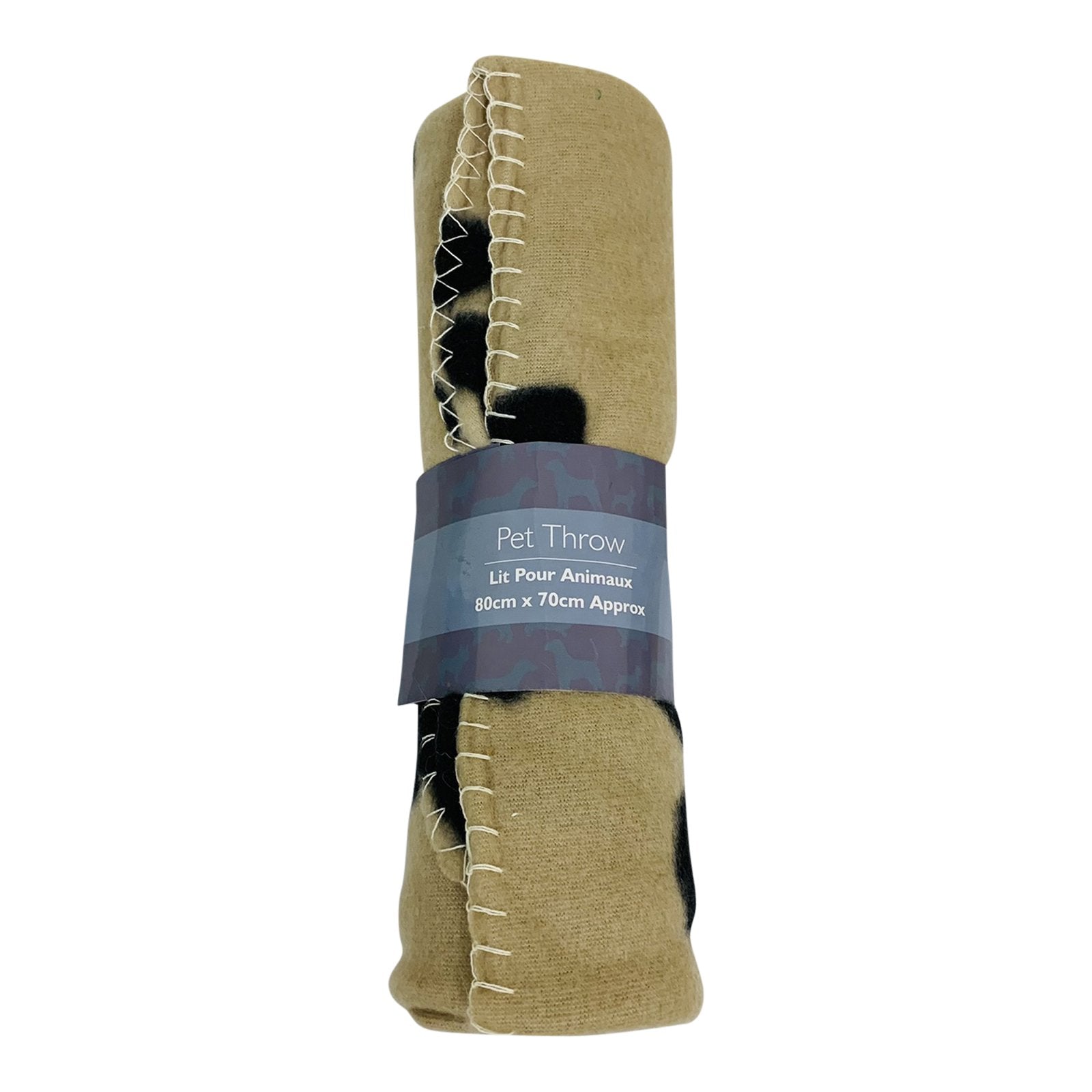 This brown fleece pet throw with black paw prints would be perfect for any four legged friend to give them a soft place to lay, hide, and snuggle. Brown fleece pet throw with brown paw print. Measurements: 70 x 80cm SKU: PE0836