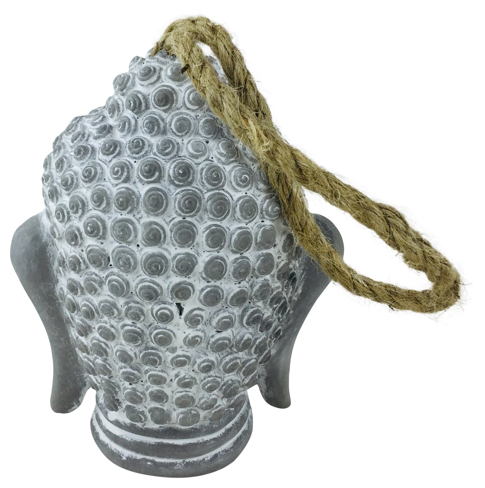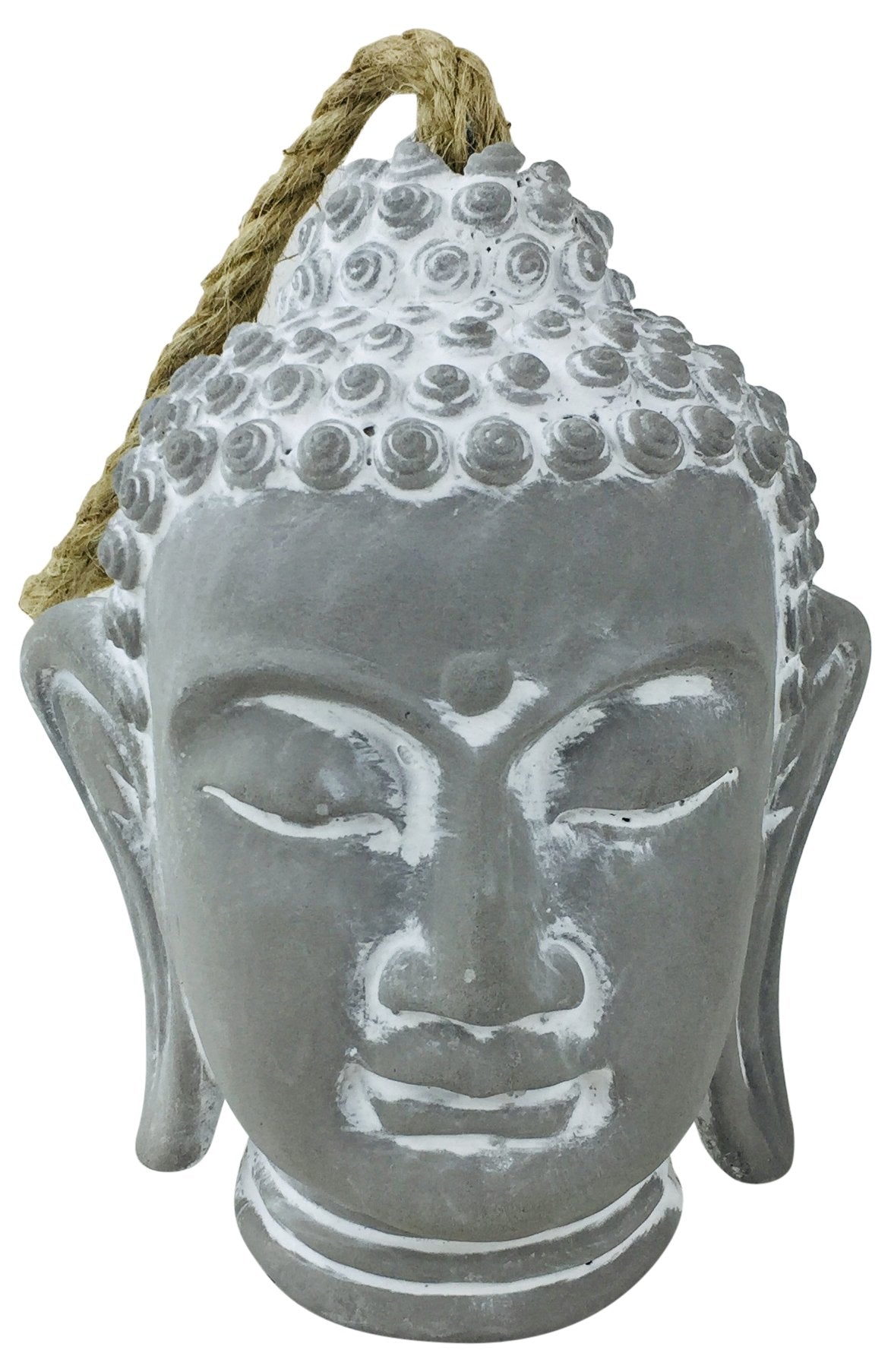 A detailed Buddha doorstop with a washed effect finish. The door stop itself is of high quality being made out of cement and weighing 1.8kg, making it perfect for keeping open even the largest of doors. The under side of the door stopped has a soft fabric finish. Measurements: W14cm D10cm H18cm. Rope length is 16.5cm. The base diameter is 7.5cm. SKU: BU0100