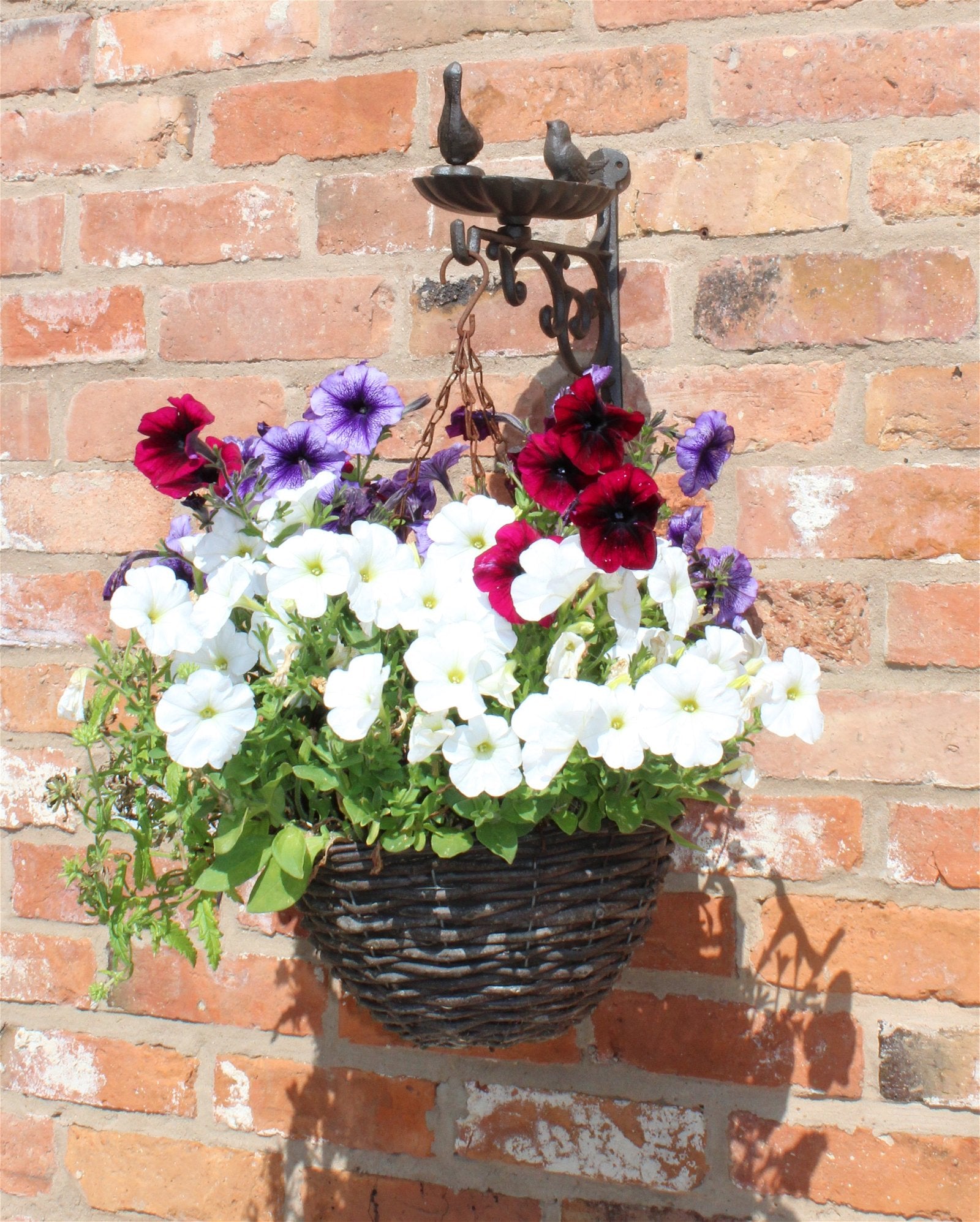Cast Iron Hanging Basket Wall Bracket With Bird Feeder