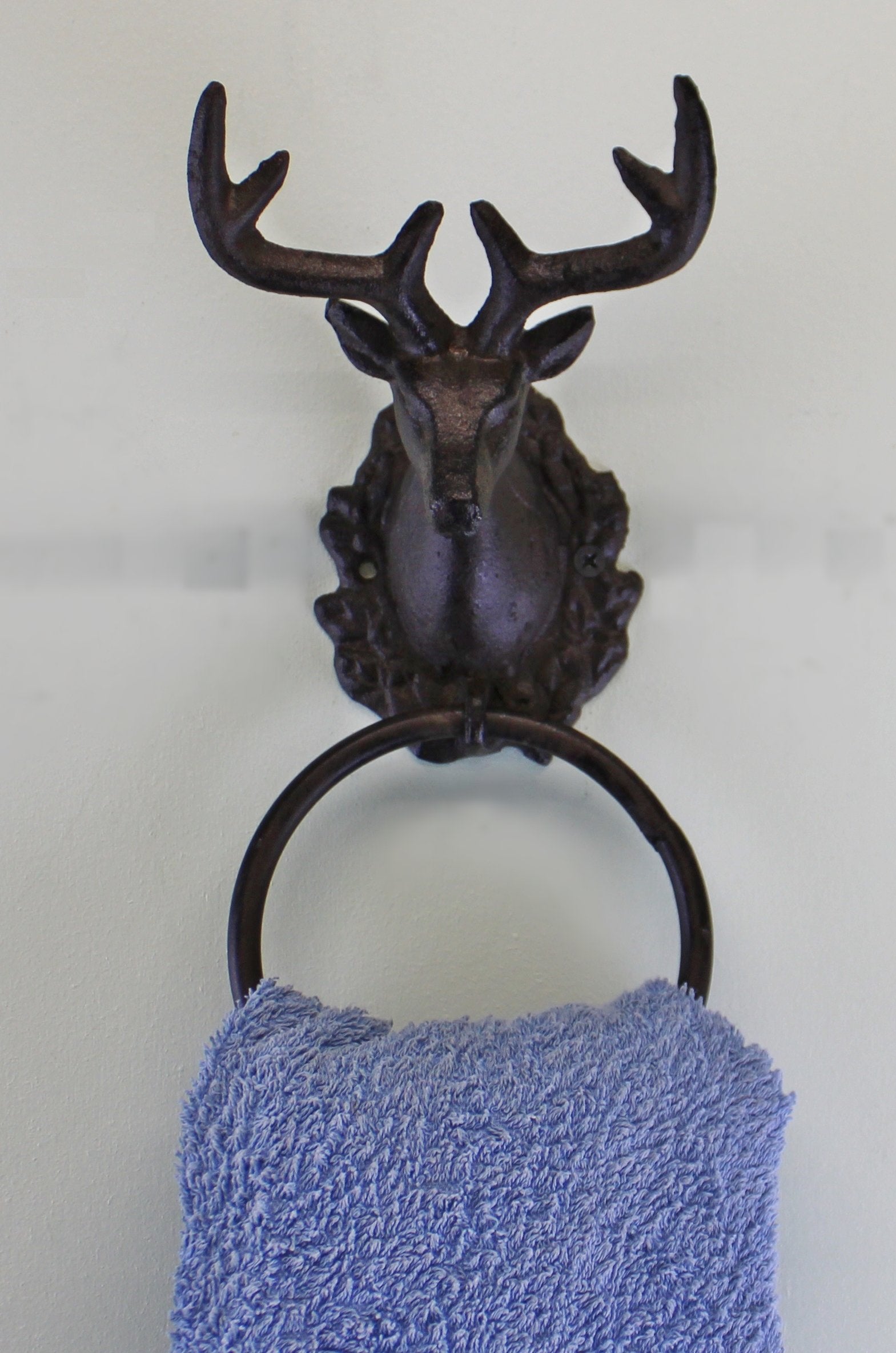 Cast Iron Rustic Towel Ring, Stag Head Design