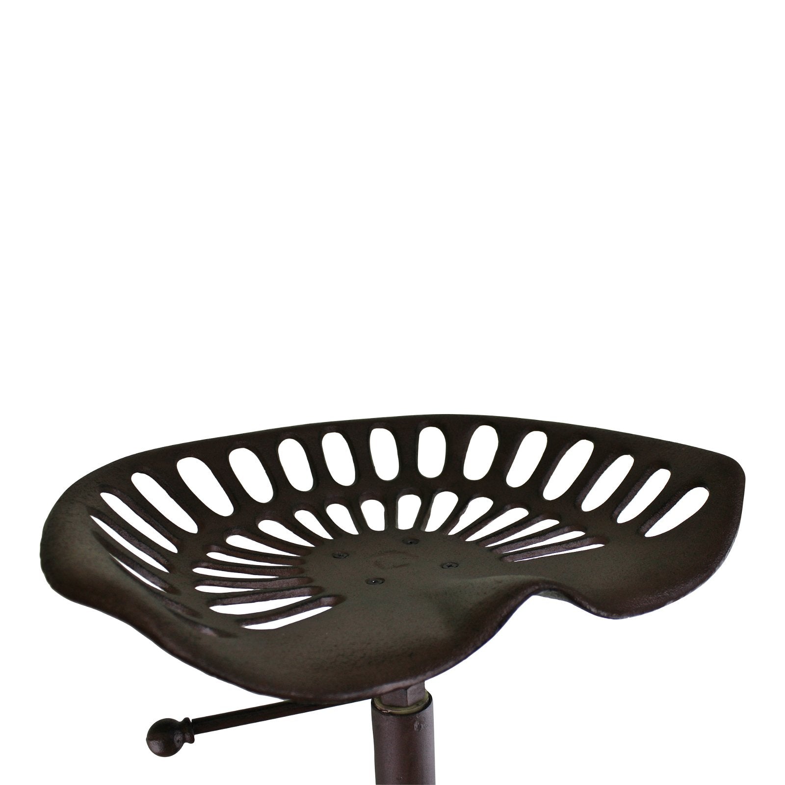 Metal Tractor Seat Kitchen Bar Stool. Replica vintage style Iron Tractor seat in dark brown rustic country kitchen style. Perfect industrial bar or kitchen bar seating With swivel seat which has adjustable height Ideal for any room- Suitable for bars, home, restaurants and much more!! Picking up on a rustic industrial theme, this is a Tractor Seat Bar Stool which is an iron replica of a seat from a tractor. It has a swivel seat and the height can be adjusted to suit. Maximum stool height 79cm. Minimum stool height 58cm. Seat size, width 47cm, depth 37cm. Floor footprint, width 33.5cm, depth 33.5cm. Comes partially assembled, minimal assembly required Measurements: 39 x 79 x 47cm
