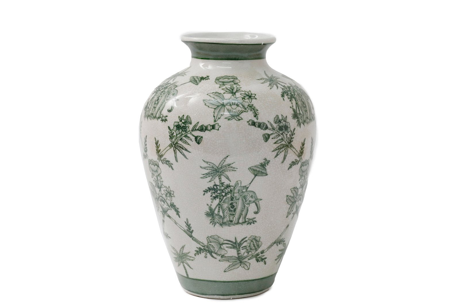 Introducing our Ceramic Parrot Palm Willow Vase, a stunning embodiment of tropical elegance and artisanal beauty. Crafted with intricate parrot and palm willow motifs set against a mesmerizing crackle glaze finish, this vase exudes exotic charm. Standing at 30cm tall with overall measurements of D19 x H30 x W19cm and weighing 2kg, it commands attention as a striking centrepiece in any room. Boasting an 8cm opening and a generous depth of 29cm, this vase offers ample space to showcase your favourite floral arrangements with grace and style. Elevate your decor with this captivating Ceramic Parrot Palm Willow Vase, bringing the lush beauty of the tropics into your home.