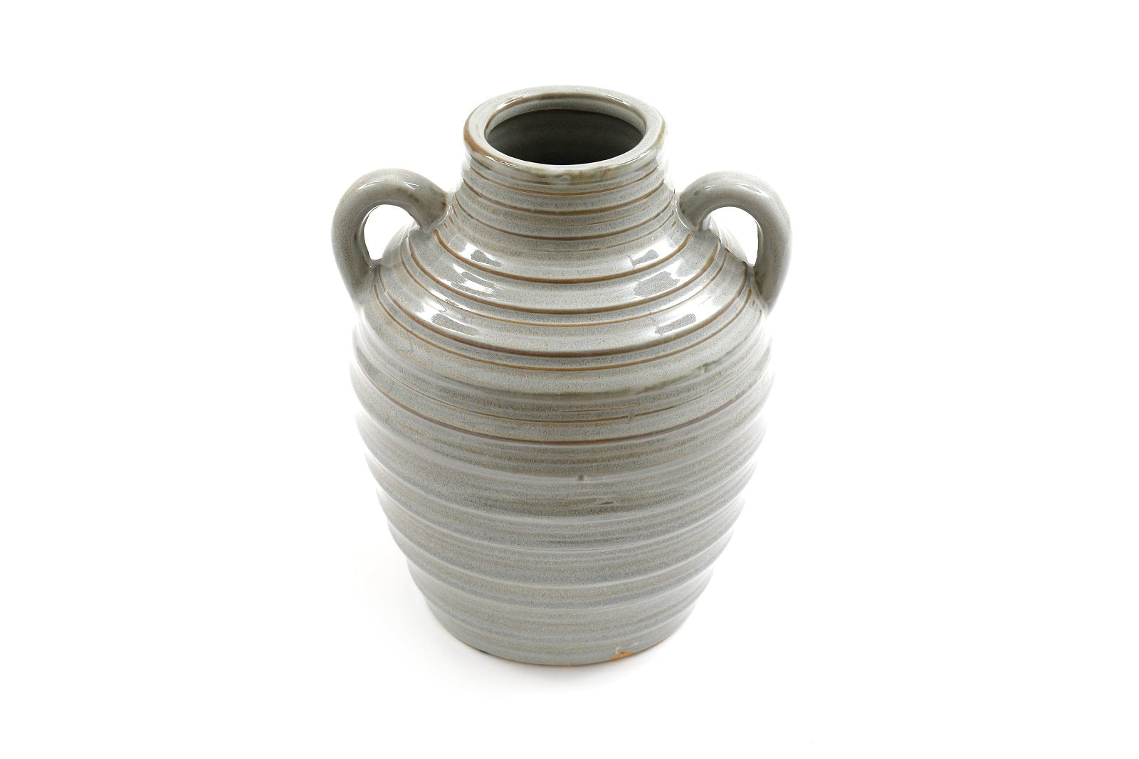Ceramic Grey Ribbed Vase With Handles 20cm
