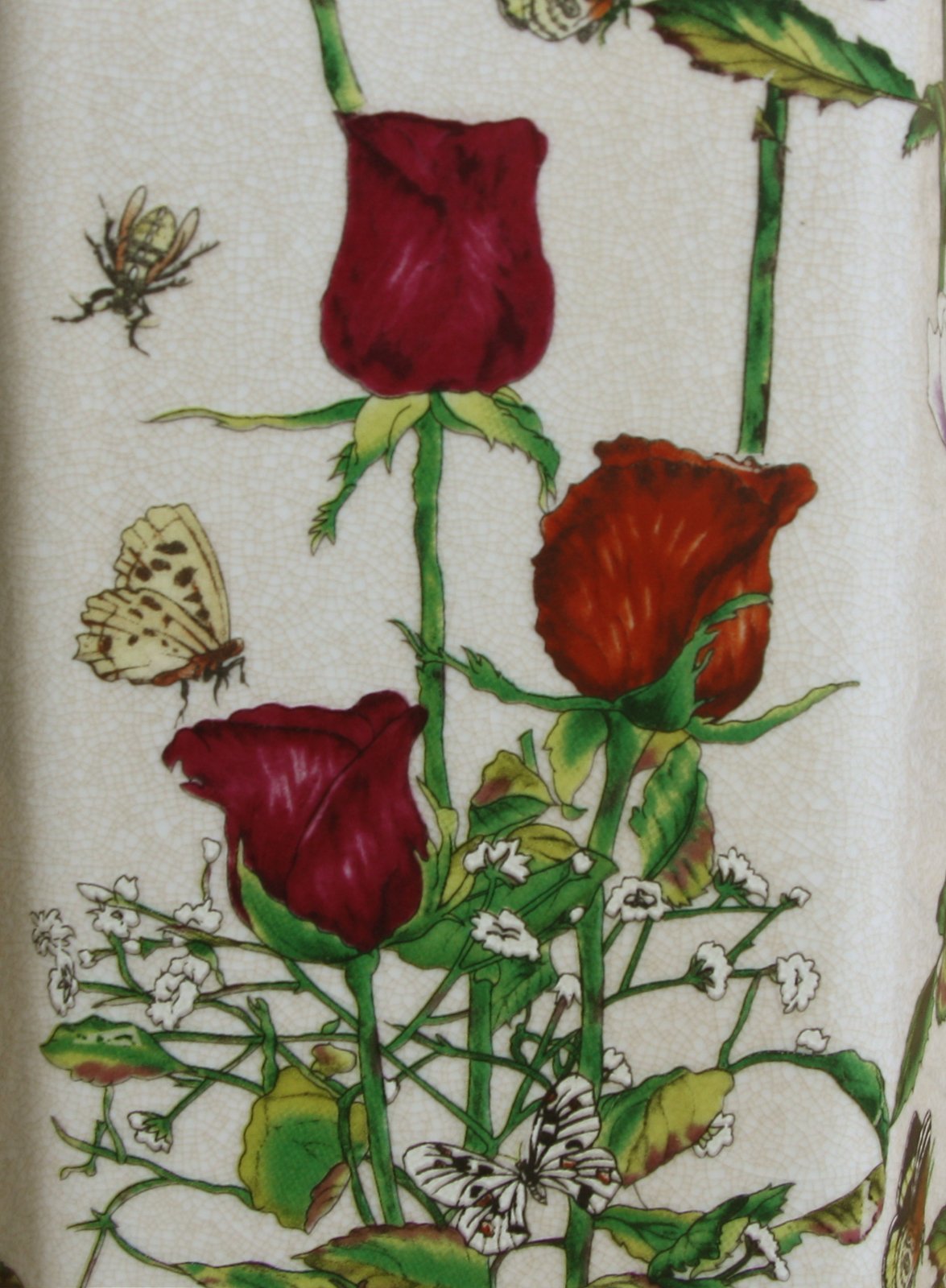 A glazed, hexagonal ceramic stick stand with a multi coloured butterfly and flowers design. This stylish design adds the perfect finishing touch to your home with a lovely modern design it is great for matching your decorating style in a traditional or contemporary setting. The umbrella stand has a brown speckled finish creating a vintage inspired appearance -perfect for using in the hallway as an umbrella or stick stand or great for using as a large vase for displaying a floral arrangement of dried flowers, twigs or branches. This item is slightly distressed ceramic. This means during the manufacturing process slight imperfections have been deliberately created. These give the item an older more 'antique' look than it would have if it had been made to be perfect. These are meant to give the careworn and well used look of a much older item to a recently manufactured product. This distressed finish is not to be regarded as a fault. Measurements: 22 x 45 x 22cm