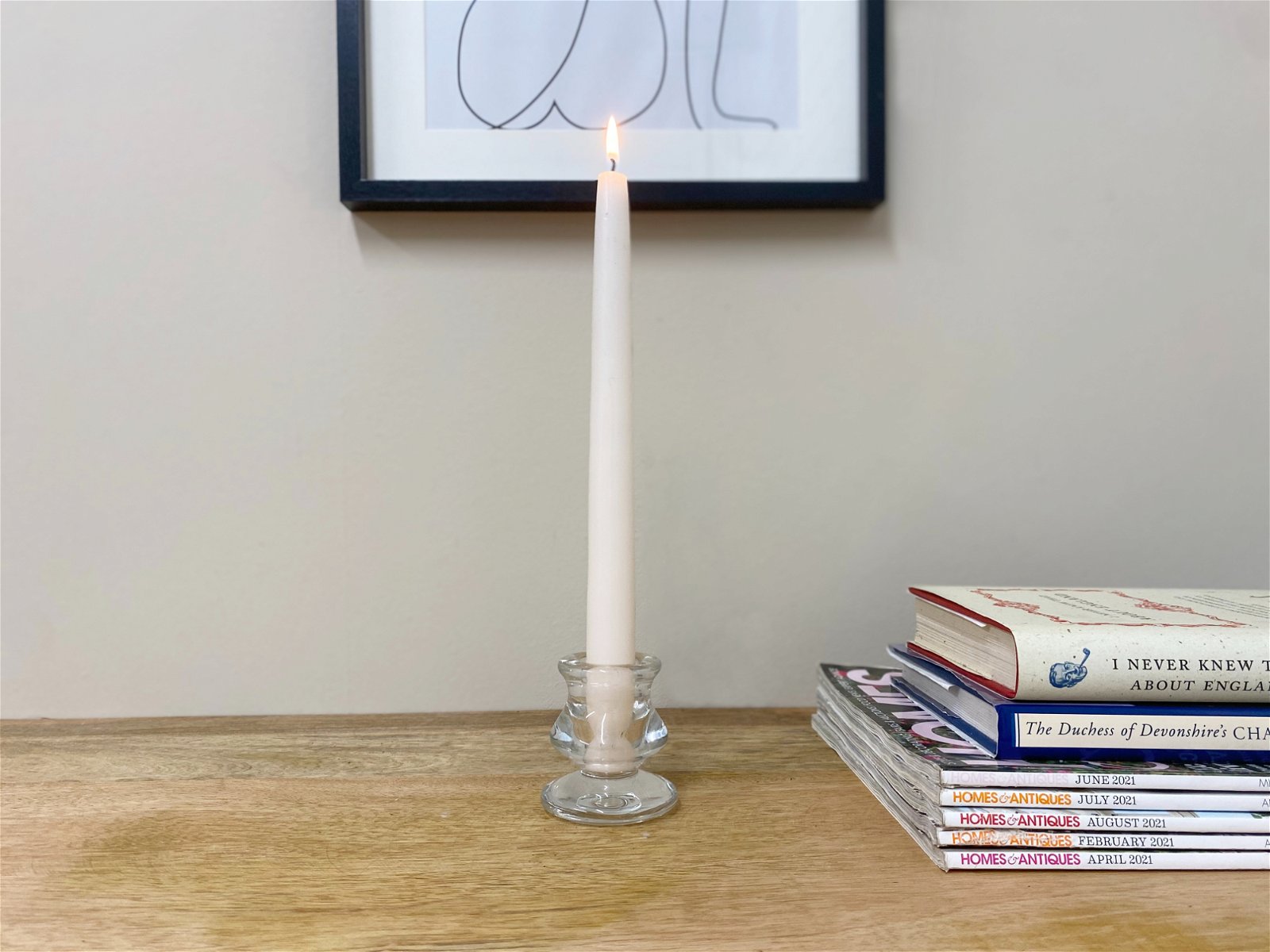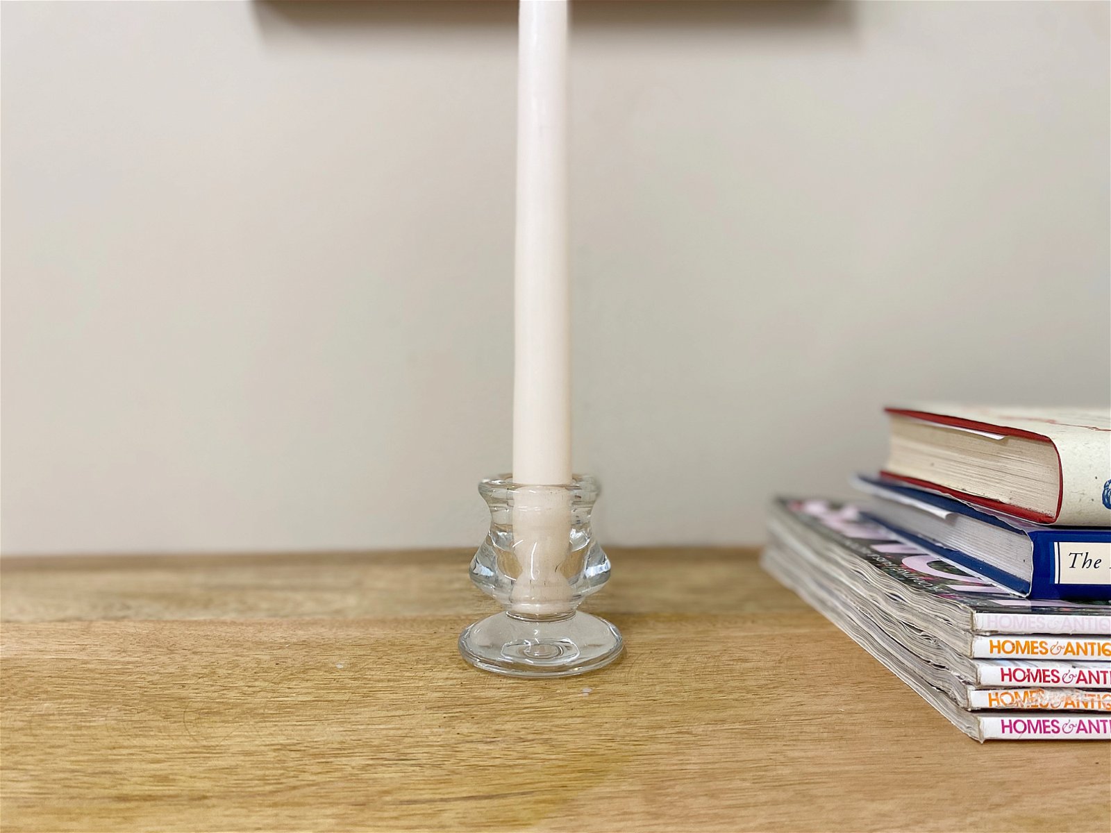 A Clear glass taper candle holder suitable for candles with a maximum diameter of 2cm. This item is plain but stylish and is easy to clean and durable for long term use. Measurements: D6 x H6 x W6cm