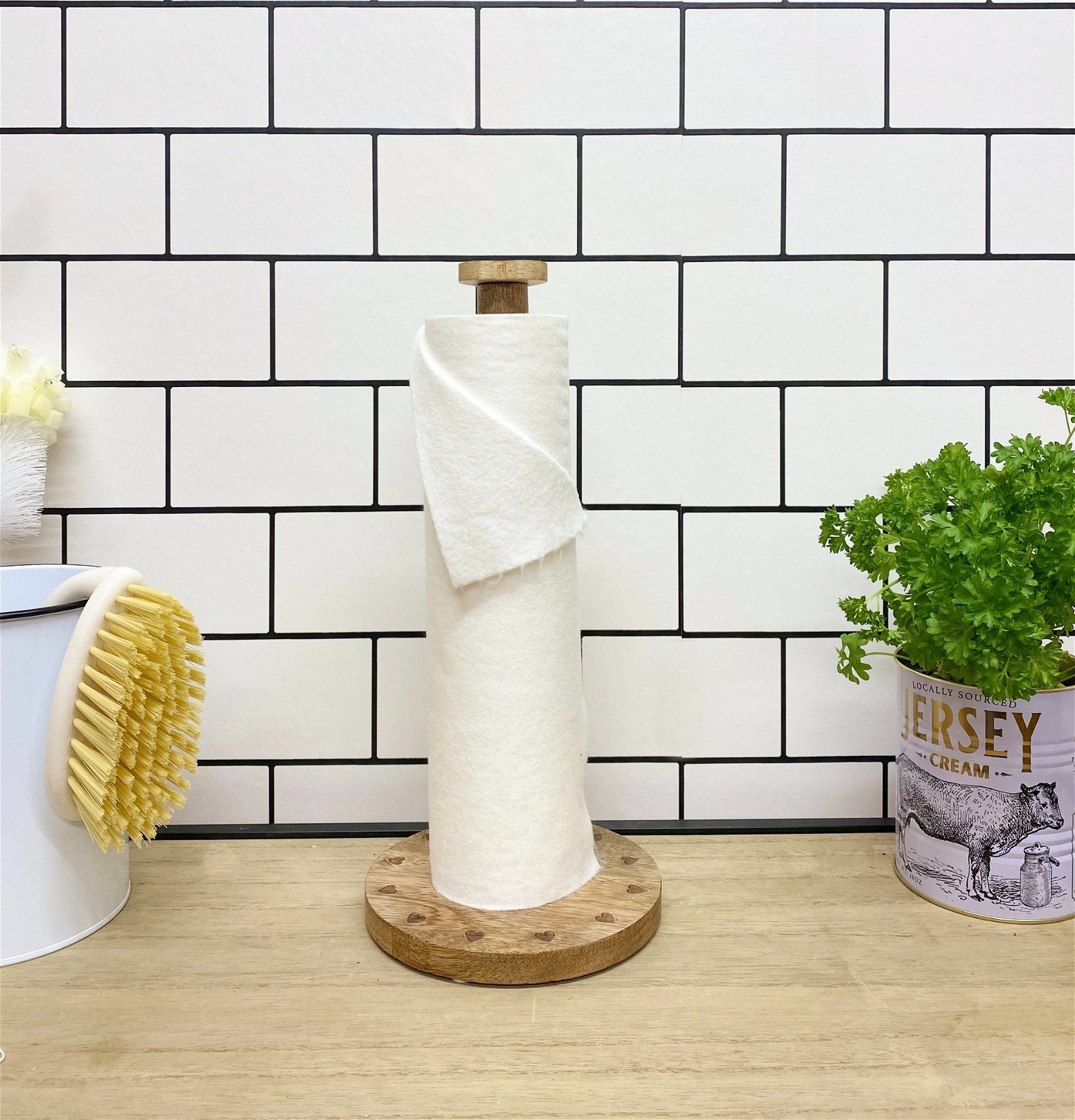 Cream washable kitchen roll made from environmentally friendly natural resources including Bamboo tissue. This material is very durable and hard wearing and may withstand approx 100 washes. This attractive item is part of our 'Kind Home' range. Measurements: D8 x H29 x W8cm