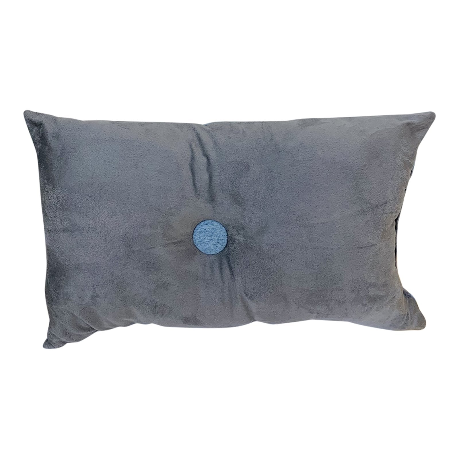 This rectangular reversible dark blue and grey cushion would be great for adding colour to a living room or bedroom. The contrasting central button gives a pop to the cushion. The cushion comes fully filled and ready for use. The dimension of the double sided scatter cushion are 13x45x36cm with the central button feature 3.5cm diameter of contrasting colour grey / dark blue. The filling is 100% polyester. SKU: SR0045