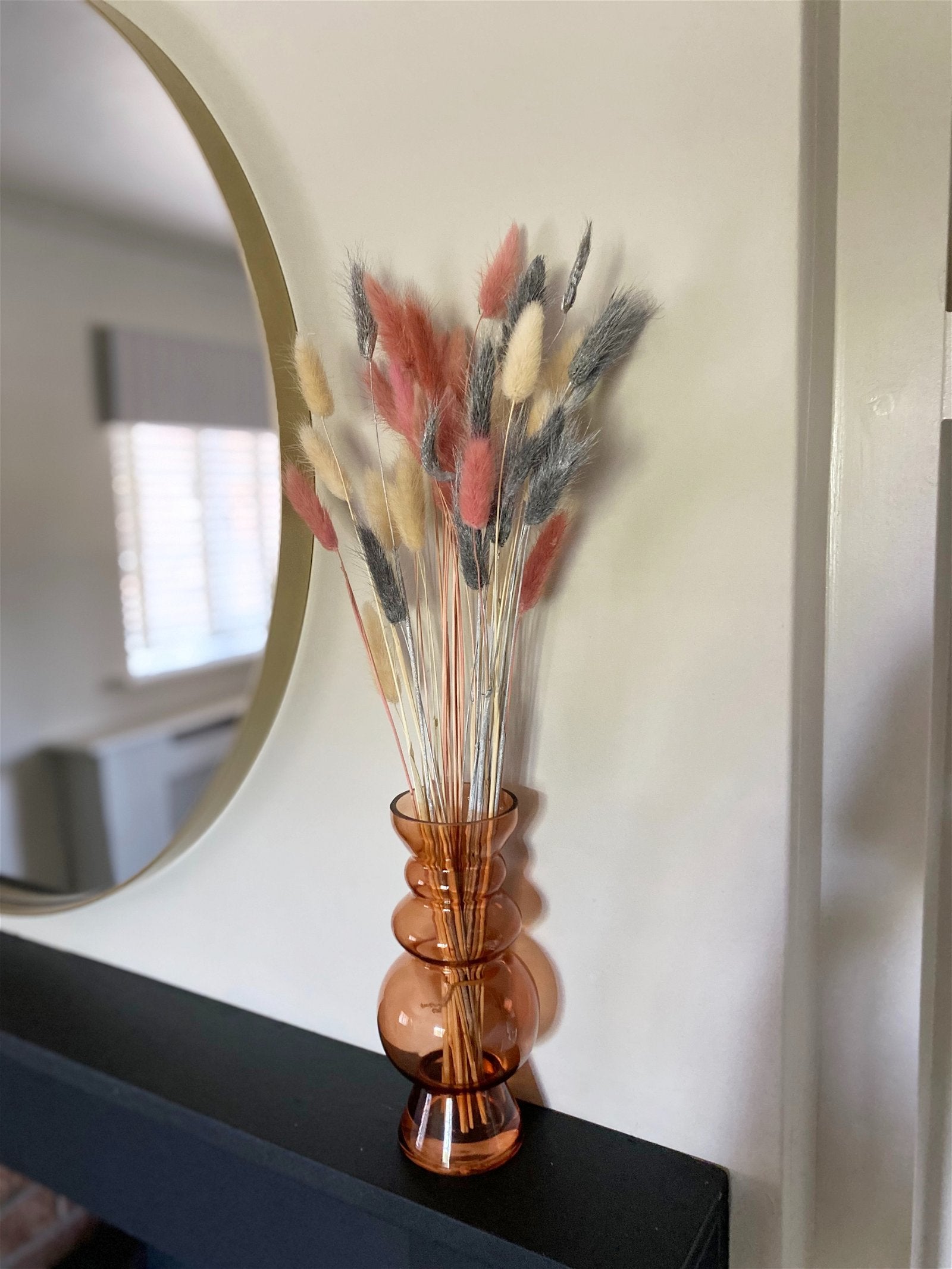 A beautiful bunch of coloured lagurus, commonly known as bunny tails. This bunch is perfect for adding a natural floral touch to your home. Each bunch is carefully hand selected and packed, however please note that due to the nature of dried grasses and flowers they may differ slightly to those pictured. Stems may vary in height, size and shape. Approx height is 44cm. Measurements: D10 x H44 x W44cm