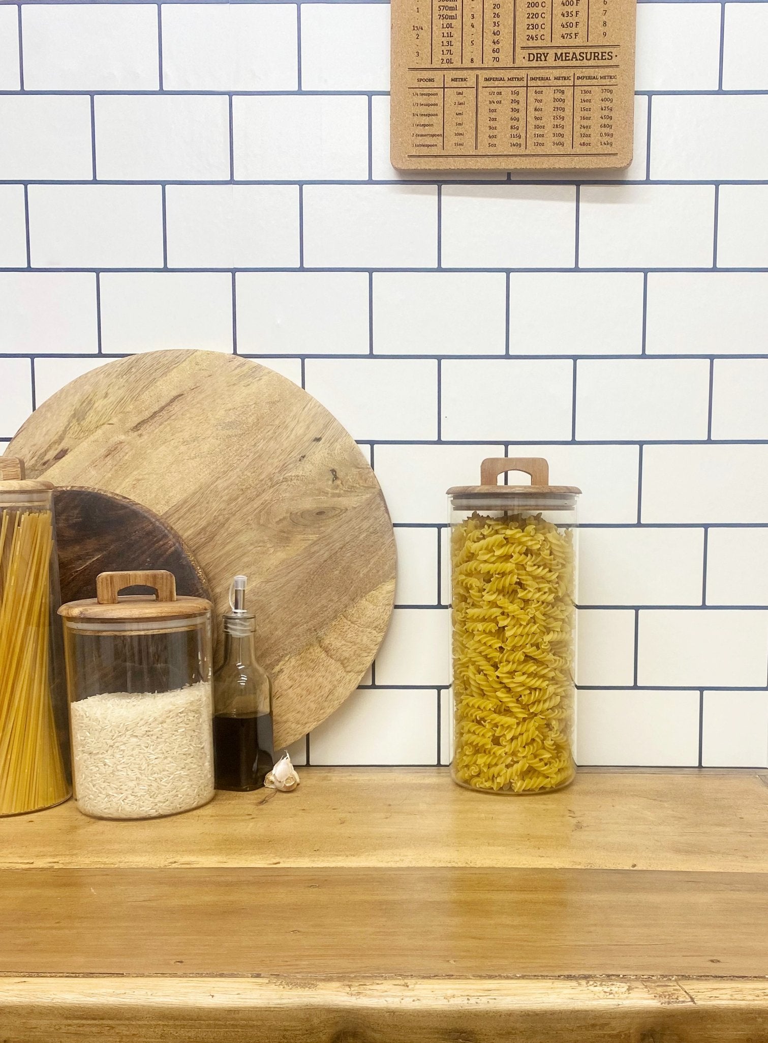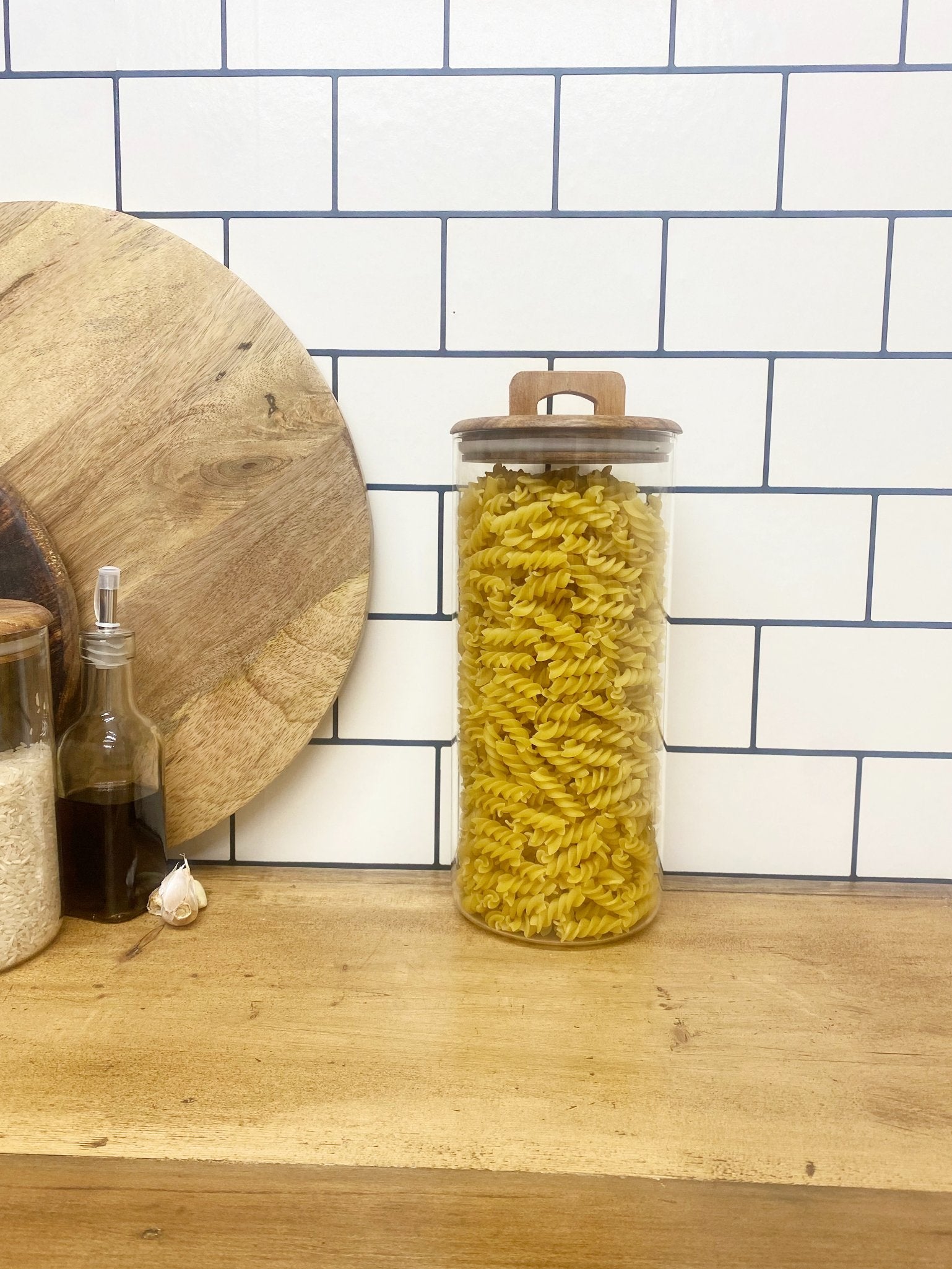 Bring charm and interest to your shelves, with this storage jar made from glass. Featuring an Acacia wood lid with an airtight sealer. Not only as we all try to reduce our plastic use, these stylish yet practical pieces are perfect for keeping grains and pulses fresh. This jar holds up to 2.7 litres. Measurements: D12 x H30 x W12cm