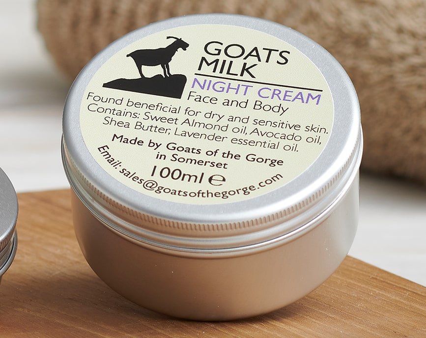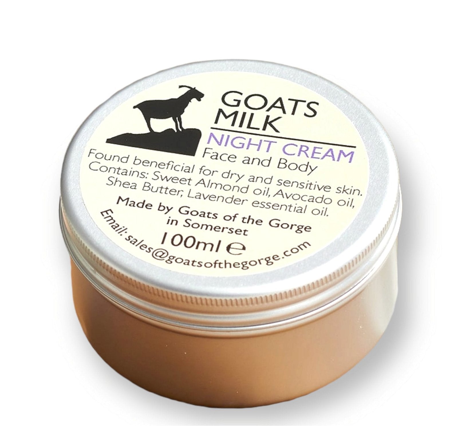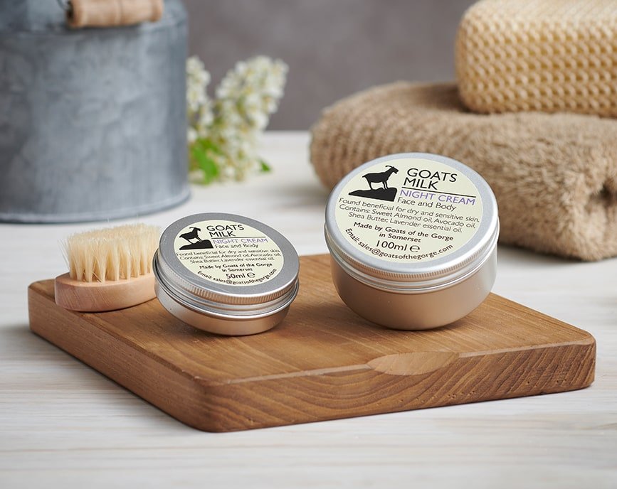 Inspired by our trusted Goats Milk Skin Cream, our new Night Cream helps relax and sooth all types of skin. The Goat’s milk skin cream comes in a metal tin, filled to the brim. The thick cream means a little goes a long way – you can feel the natural oils soak into your skin, leaving it feeling soft. A perfect accompaniment to finish off your bath treatment. Ingredients: Contains Goats Milk, Sweet Almond Oil, Shea Butter, Avocado Oil, Lavender Essential Oil. Best Before: 9 Months from manufacture Measurements: D3.3 x H0.27 x W2.6cm