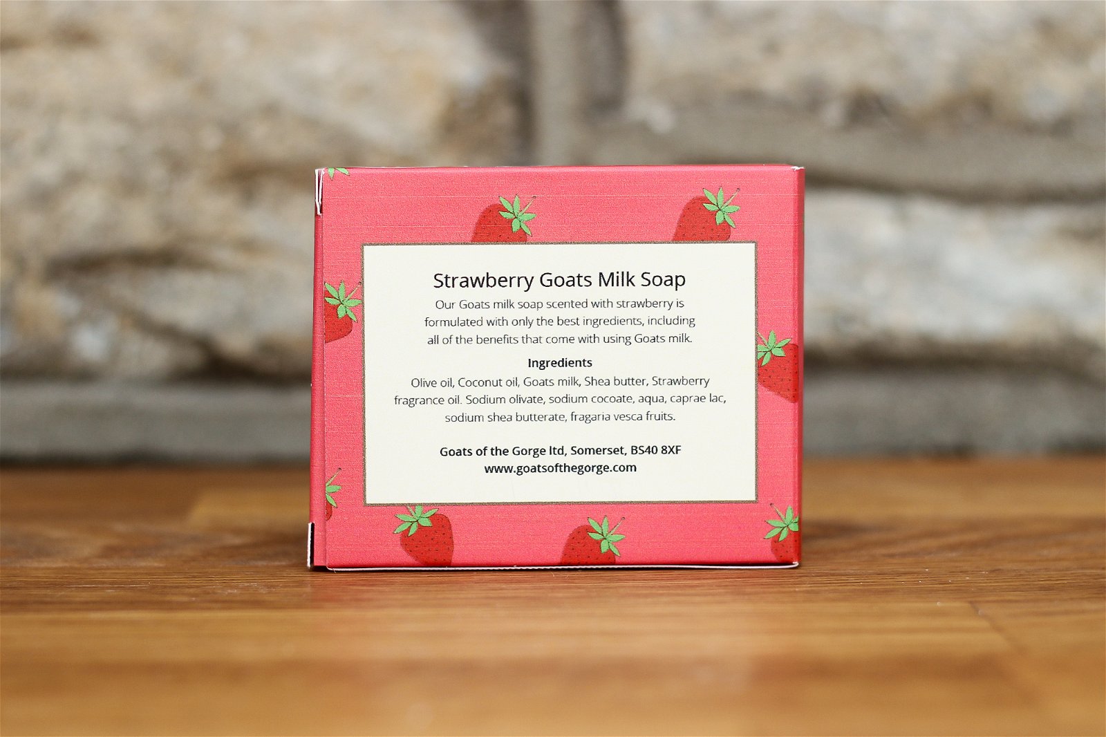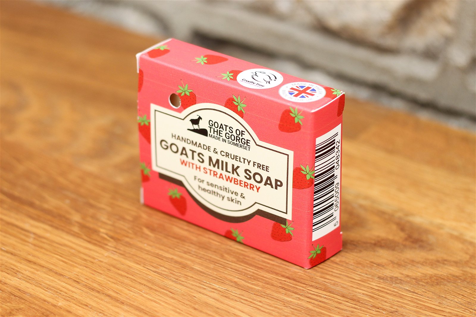 Goats milk contains many beneficial nutrients including vitamin A which helps to break down dead skin cells. When blended with natural oils it helps moisturise and rejuvenate the skin and also helps to maintain healthy skin. This bar has an imprint of Goats on it as is a milky strawberry colour. Ingredients: Contains Goats Milk, Coconut Oil, Pomace Oil and Shea Butter. Strawberry Aroma Flavouring. Best Before: 10 Years from manufacture Measurements: D2 x H0.21 x W6.6cm