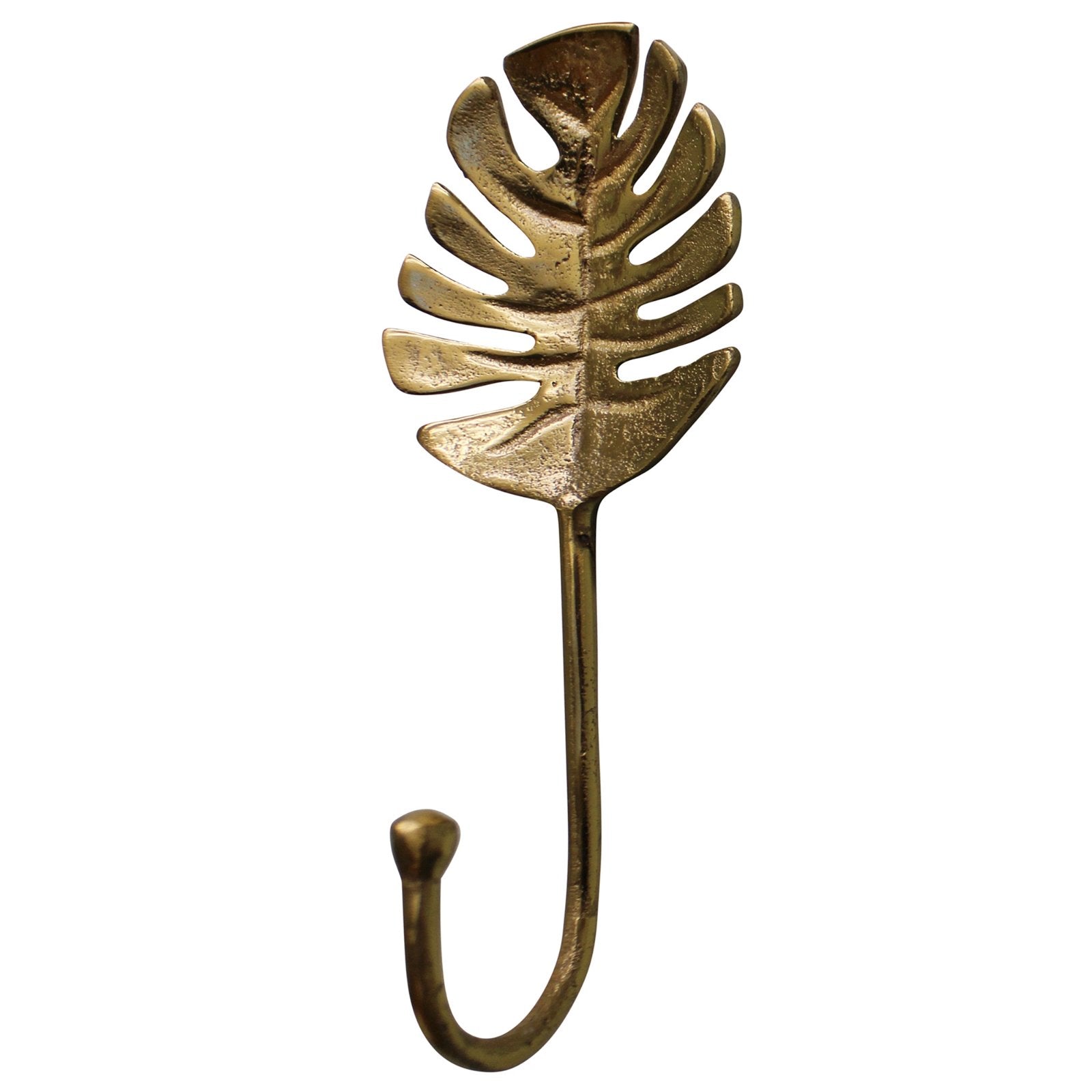 A quirky golden coat hook in the design of a palm leaf that would look fabulous in a room with gold decor. Ideal for use as a coat hook, towel hook or for a dressing gown in a bedroom.# Made of 100% aluminium with a gold finish. Fitting to the rear for wall hanging. Measurements: 6.5 x 19.5 x 8cm SKU: HH5618