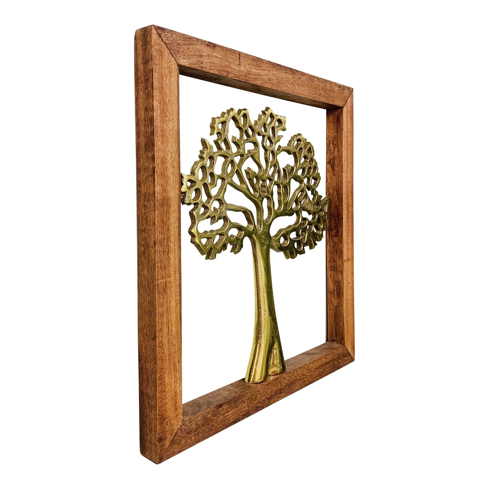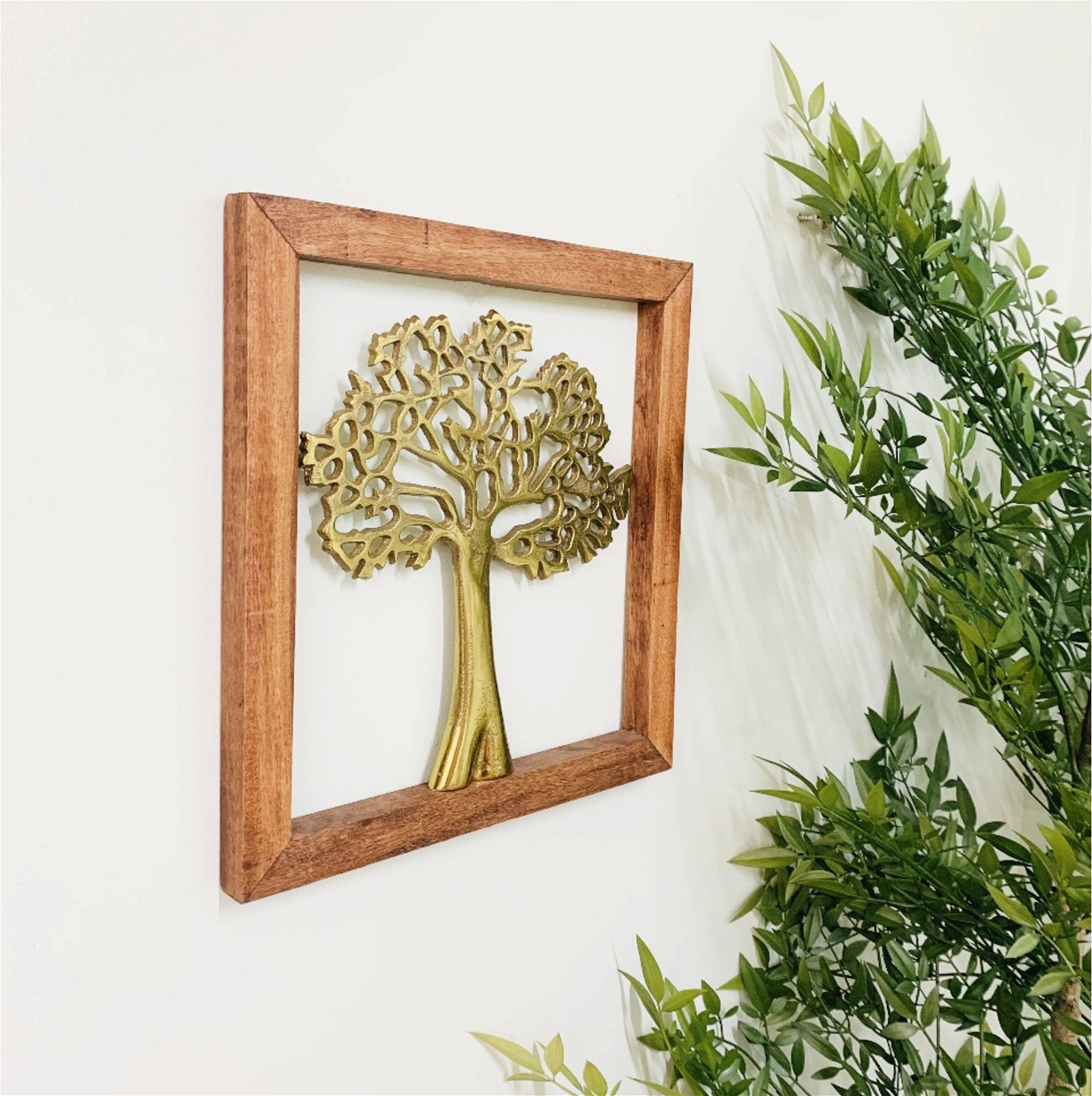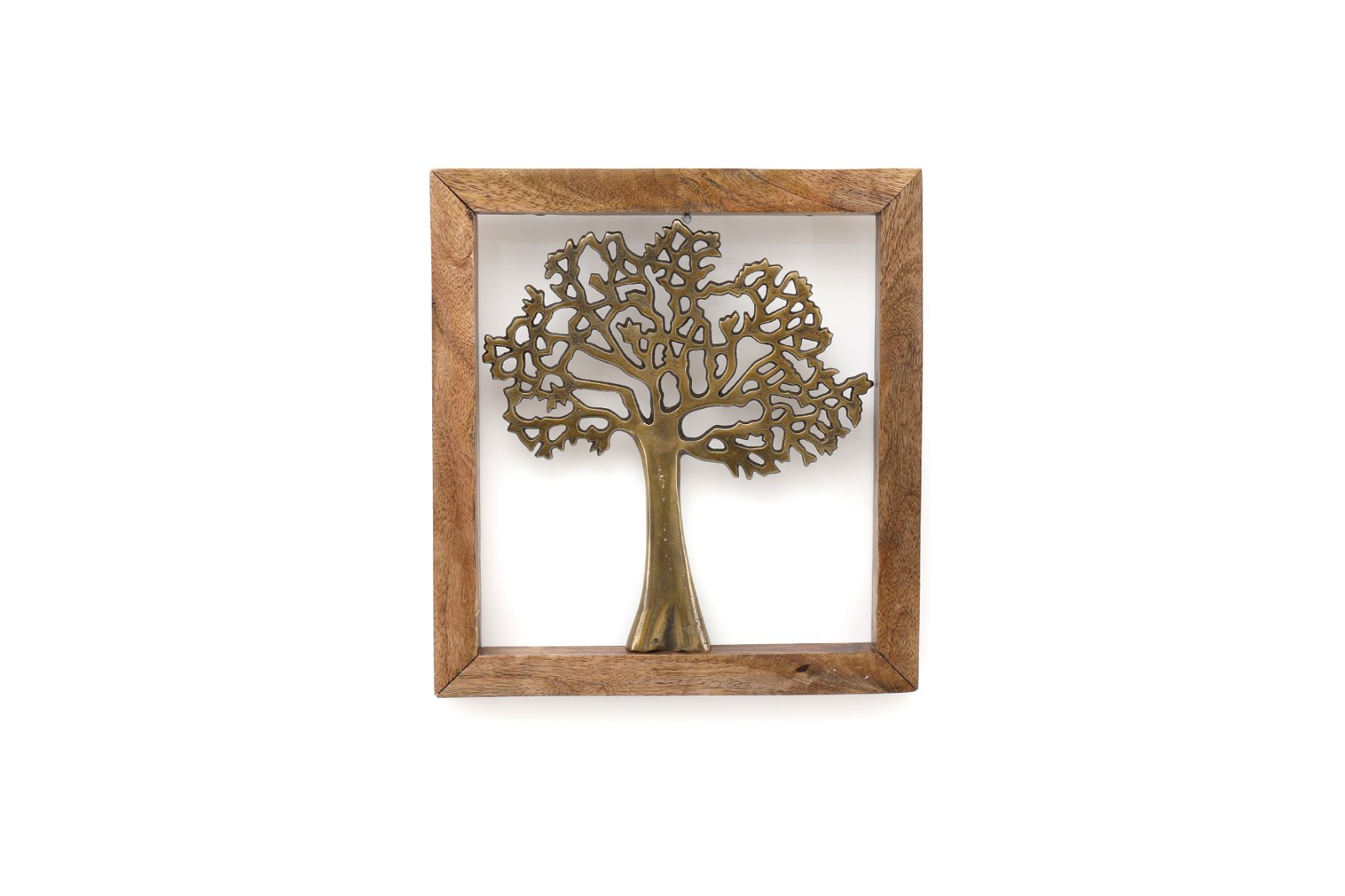 This lovely brass tree display piece brings a simple and natural decoration into your home. The wooden frame is 2.5cm in width with brass effect tree of life within. Overall measurements are: D2.5 x H31 x W29.5cm SKU: TL0088