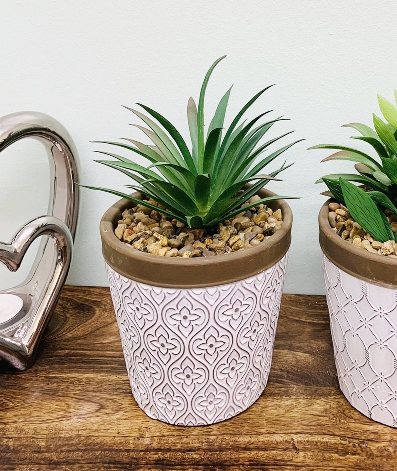 This white terracotta pot with a single faux plant brings nature into the home. The terracotta style pot is 11cm containing one plant. The overall pot and plant measurements are: D12 x H20 x W12cm SKU: SR0081