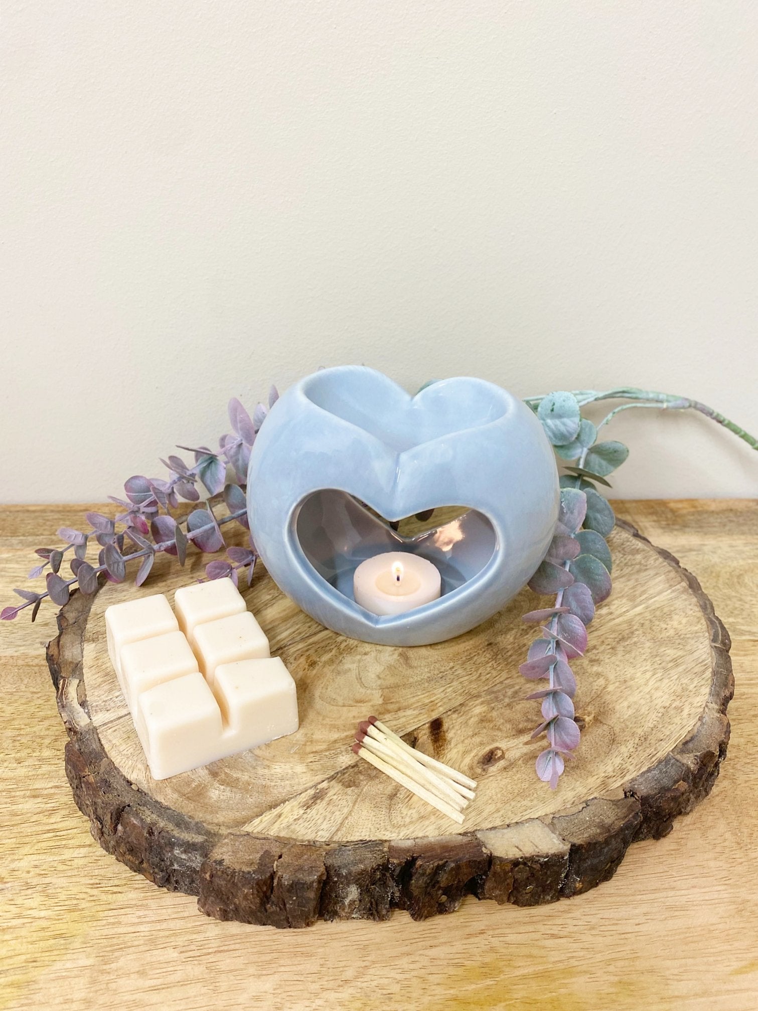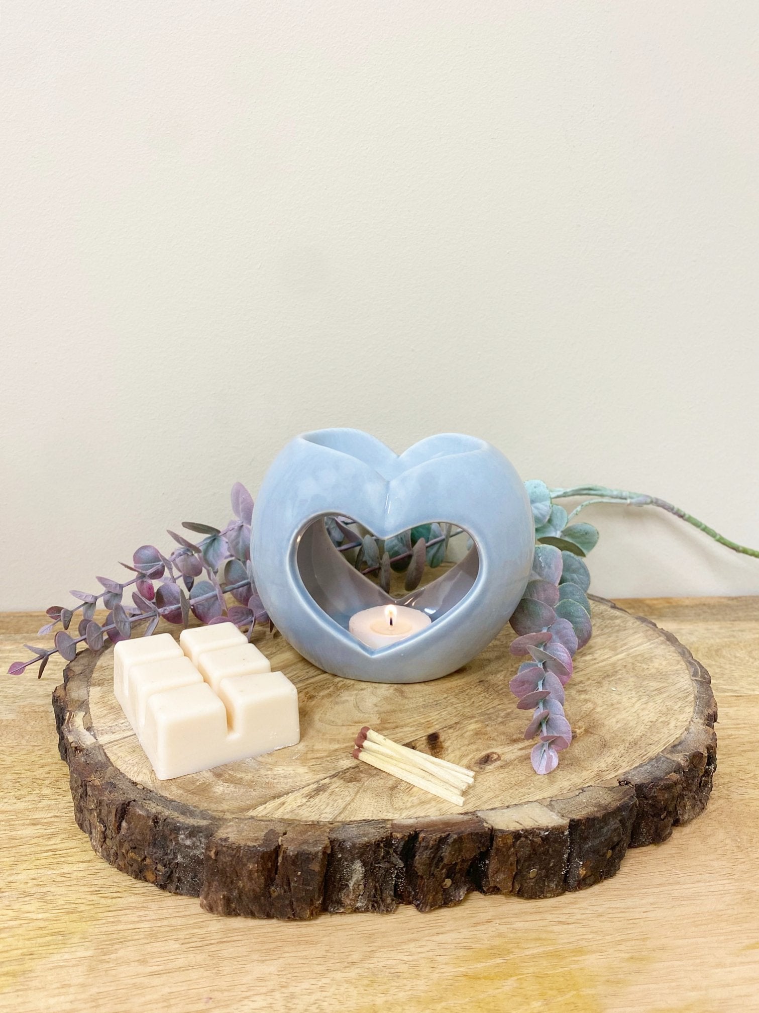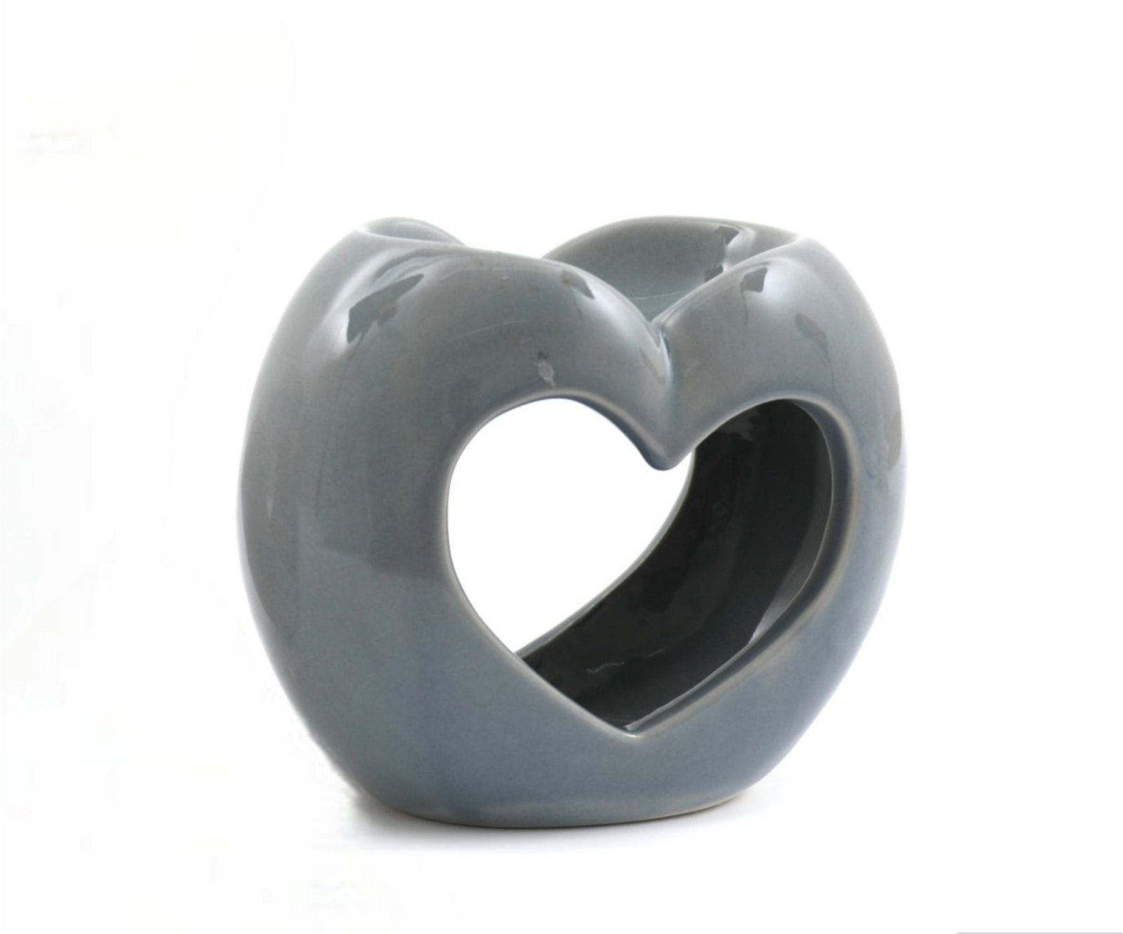 The grey coloured, heart-shaped wax or oil burner is a beautifully crafted piece with a modern design. The burner consists of a deep bowl that can comfortably accommodate two wax cubes, making it ideal for adding more fragrance to your space. The deep bowl ensures that the wax or oil burns evenly and releases a stronger scent. Made from high-quality ceramic with a gloss finish. Measurements: D11 x H8.5 x W13.5cm