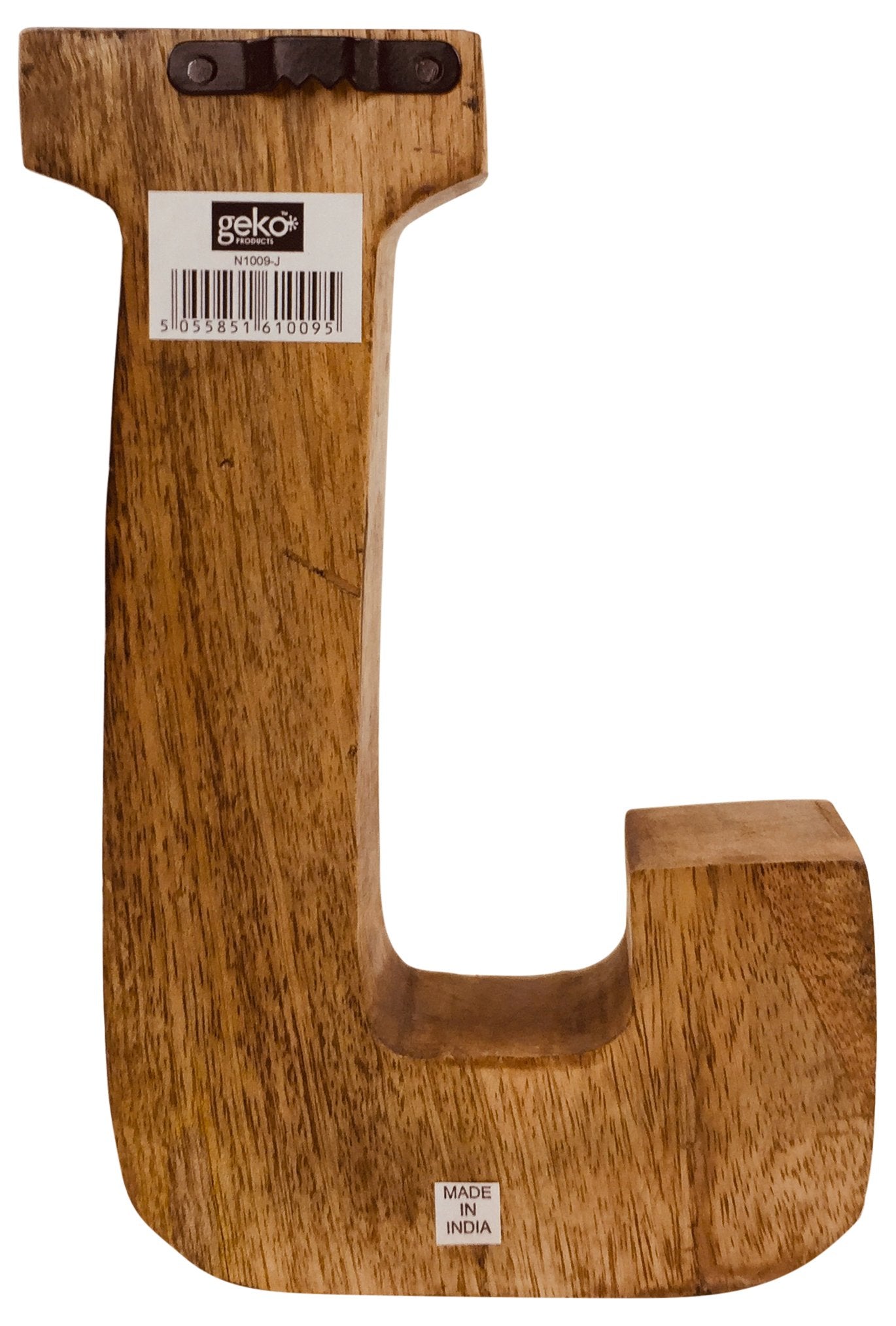 A solid hand carved mango wood letter J. The letter features an intricate geometric design which is hand carved into the front of the letter. The letter has overall rustic design and can be used to create a variety of words to fit in any scenery. The letter is free standing or can be wall mounted via the hanging bracket on the back. Perfect for new baby's, kid's bedrooms, christening, engagement presents, wedding's, birthday's, and bars or cafes. Measurements: W13cm X D4.5cm XH20.5cm. Weight: 0.35kg.