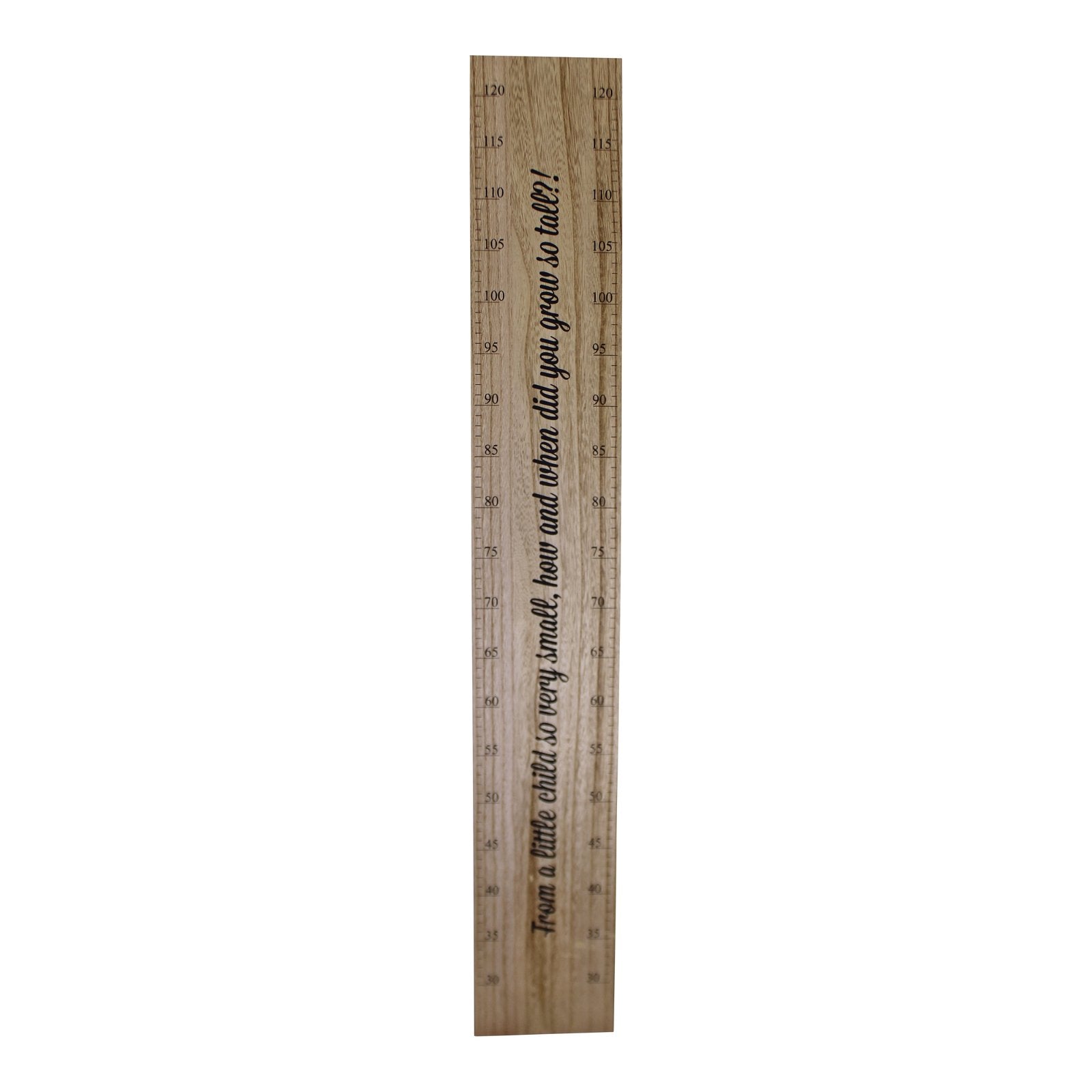 A lovely wall plaque to hang to chart your family's growth over their younger years. Features the quote From a little child so very small, how and when did you grow so tall? Made of MDF with 2 fittings to the rear for wall hanging. Designed to be hung 24cm from floor level for accurate measuring. Measurements: 1 x 100 x 15cm SKU: WP2246