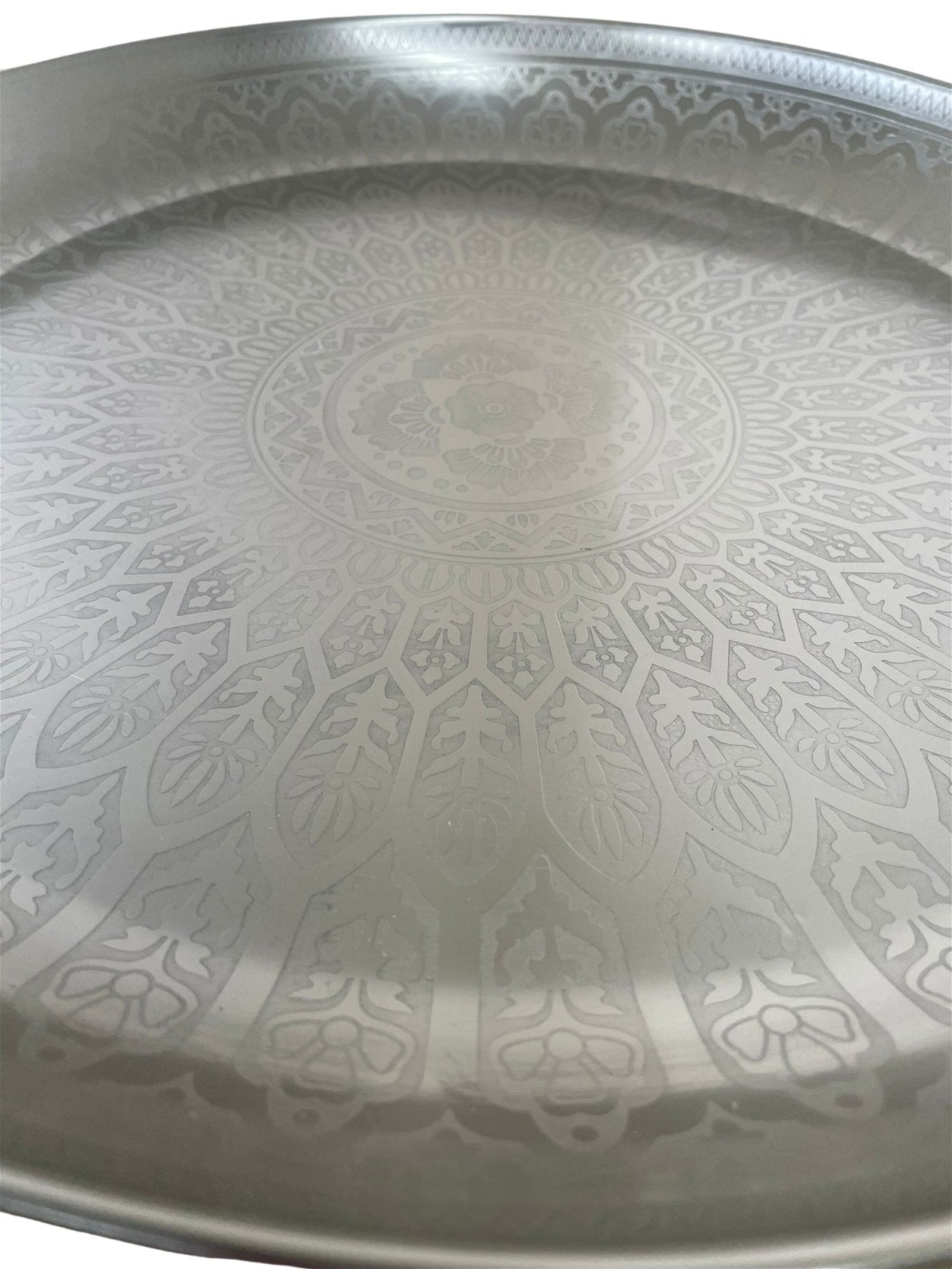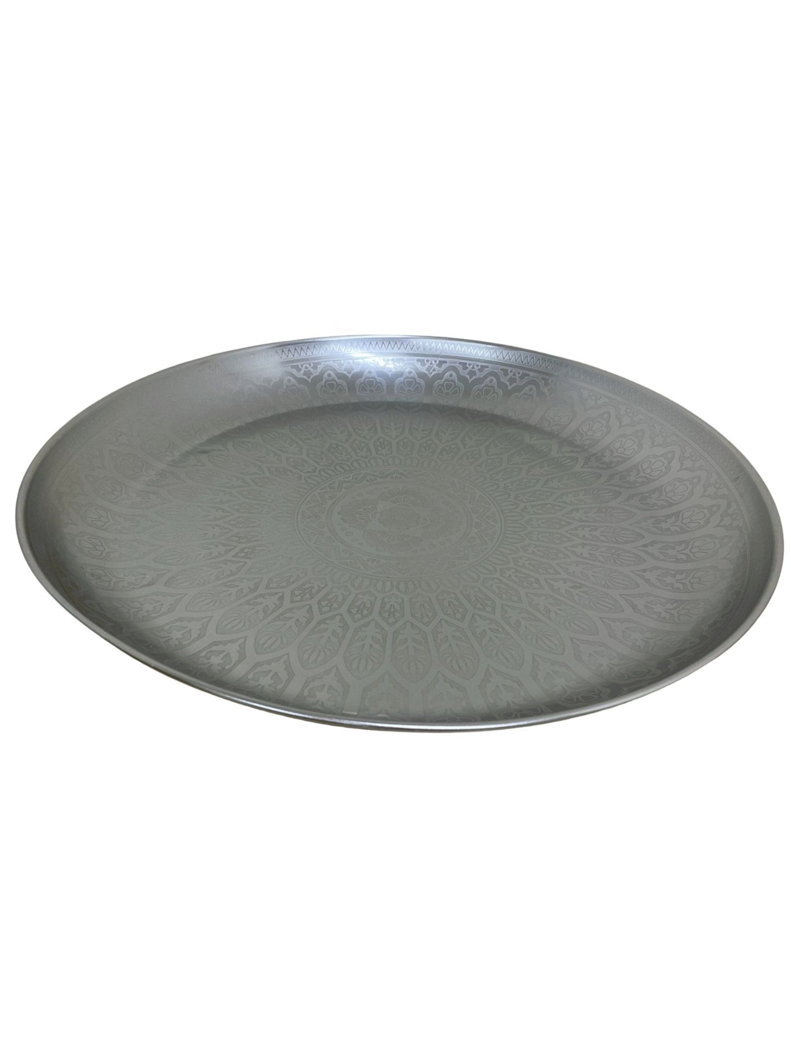 Large Decorative Silver Metal Tray With Etched Design, 42cm