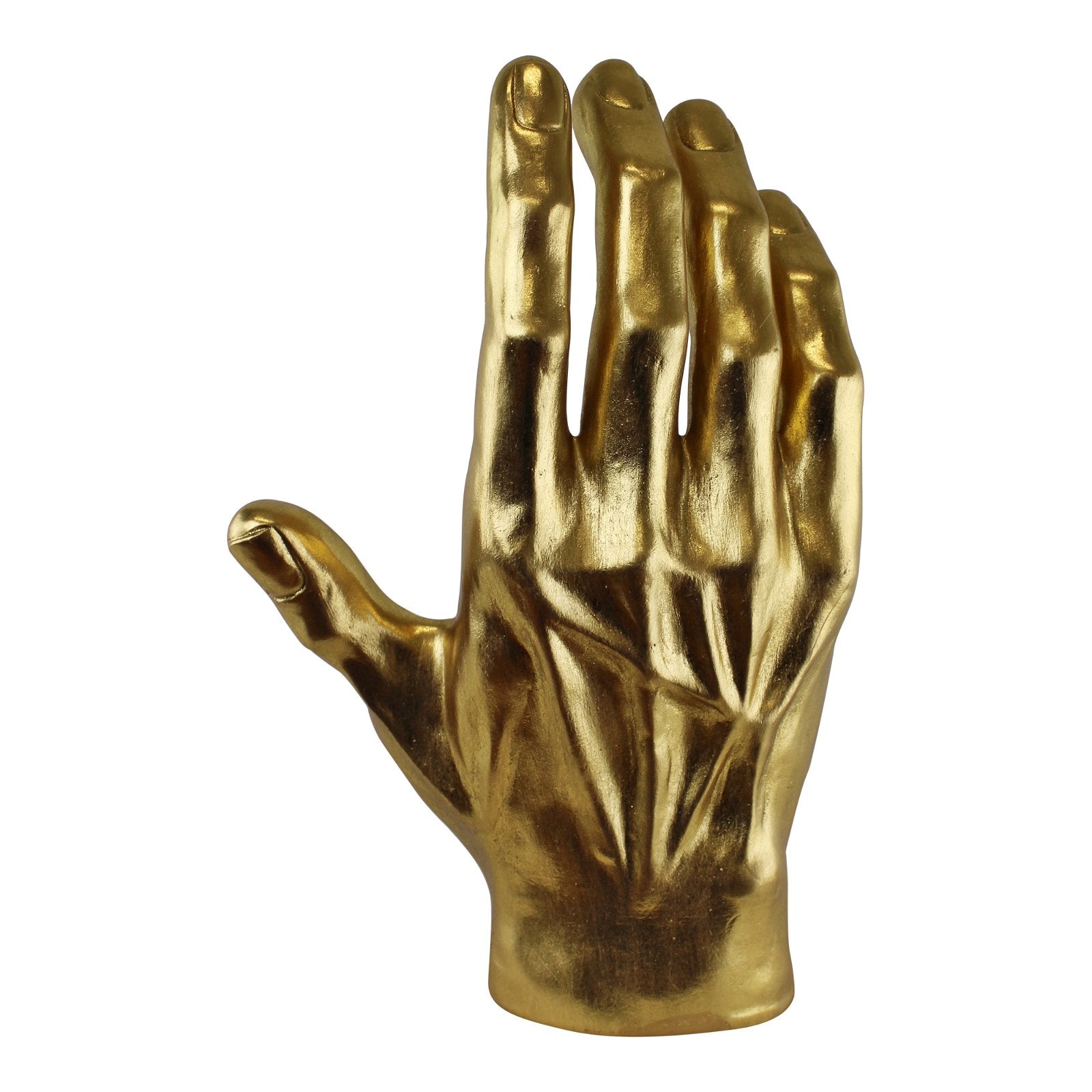 The open palm is often seen as a symbol of peace which makes the Large Gold Decorative Hand Ornament the perfect treasure for you and your home or as a gift to a friend or loved one. A striking ornament to add to your home. Made from resin and finished in gold. Measurements: 10 x 37 x 23cm SKU: TJ1056