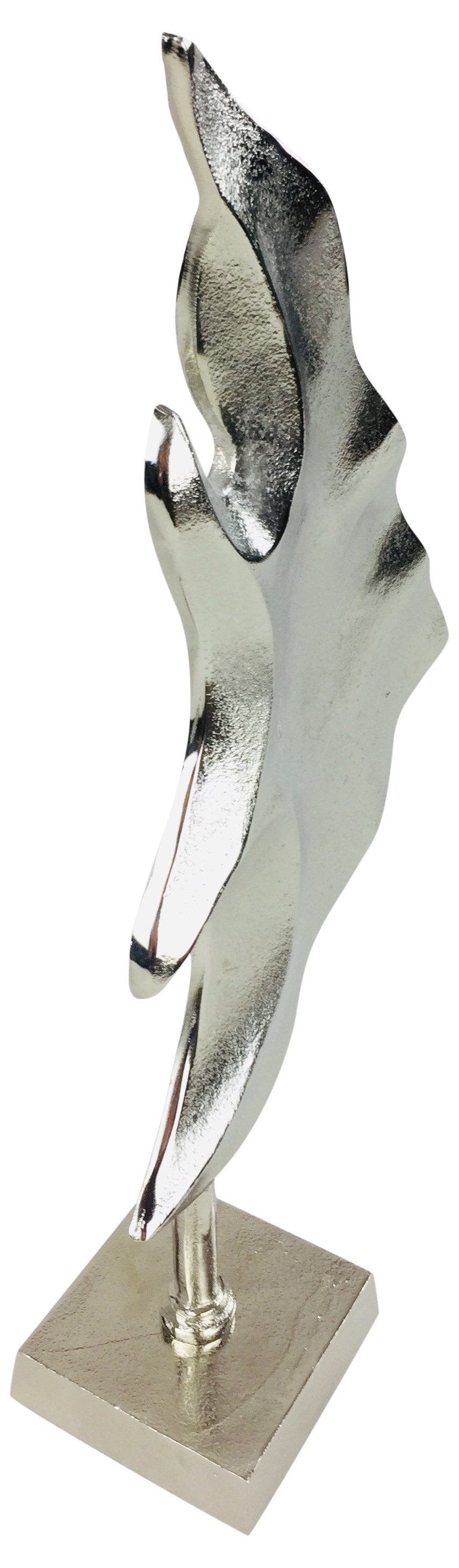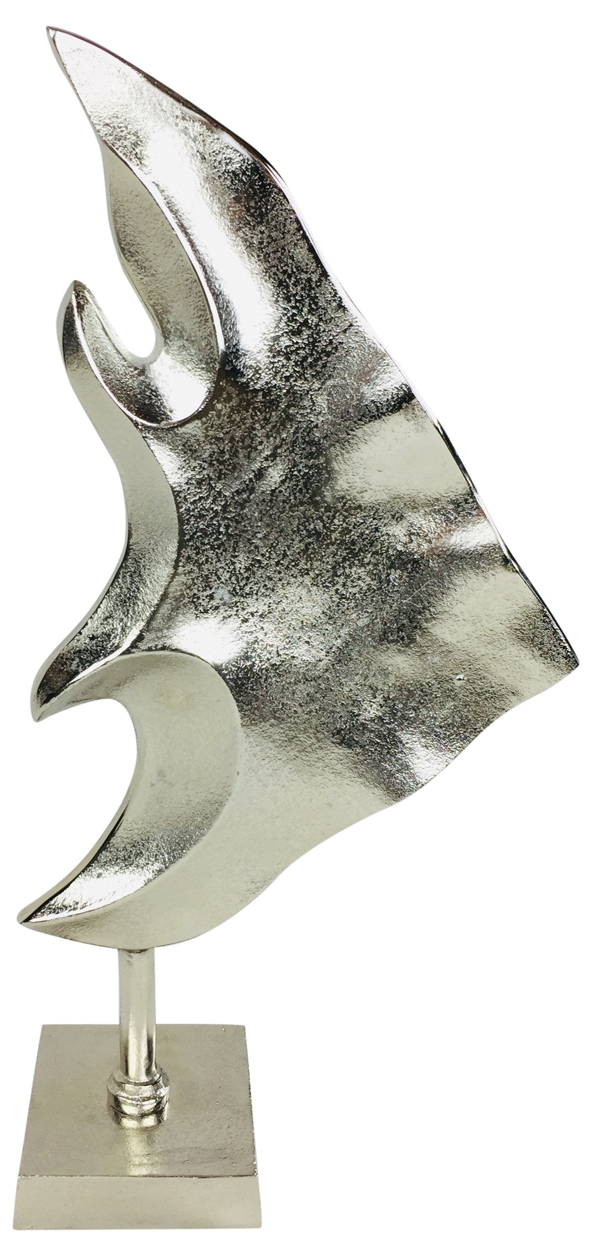 A stunning large triangular fish ornament with a stylish silver painted finish. It is made completely out of a robust aluminium making this ornament durable. Would be a great addition to any display! Assembly is simple just secure the base to the fish via the bolt provided. Measurements: W24.5cm x D11cm x H50cm. The base is 12cm x 12cm. SKU: OR1251