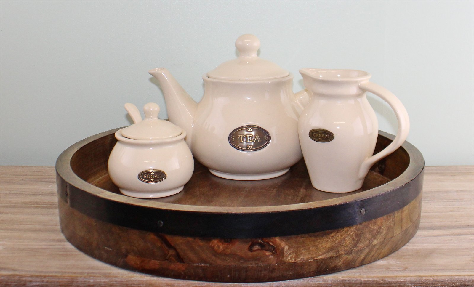 From our Country Cottage range is this chunky, solid wood serving tray. It has a diameter of 38cm and the internal depth is 4.5cm. Great item for serving drinks and food or as a display item in your home. Made of high quality mango wood with metal detail to the outside. Measurements: 38 x 6 x 38cm
