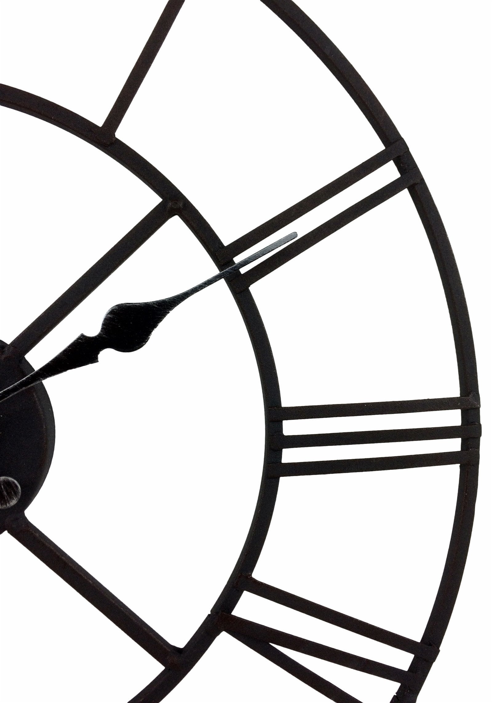 An attractive black large metal clock with a simple design. It incorporates Roman numerals with vintage clock hands. It requires 1 AA Battery. It is a contemporary design which would complement all types of decoration and this item would make a lovely gift. It diameter is 40cm and its depth is 3cms. SKU: CL0981A