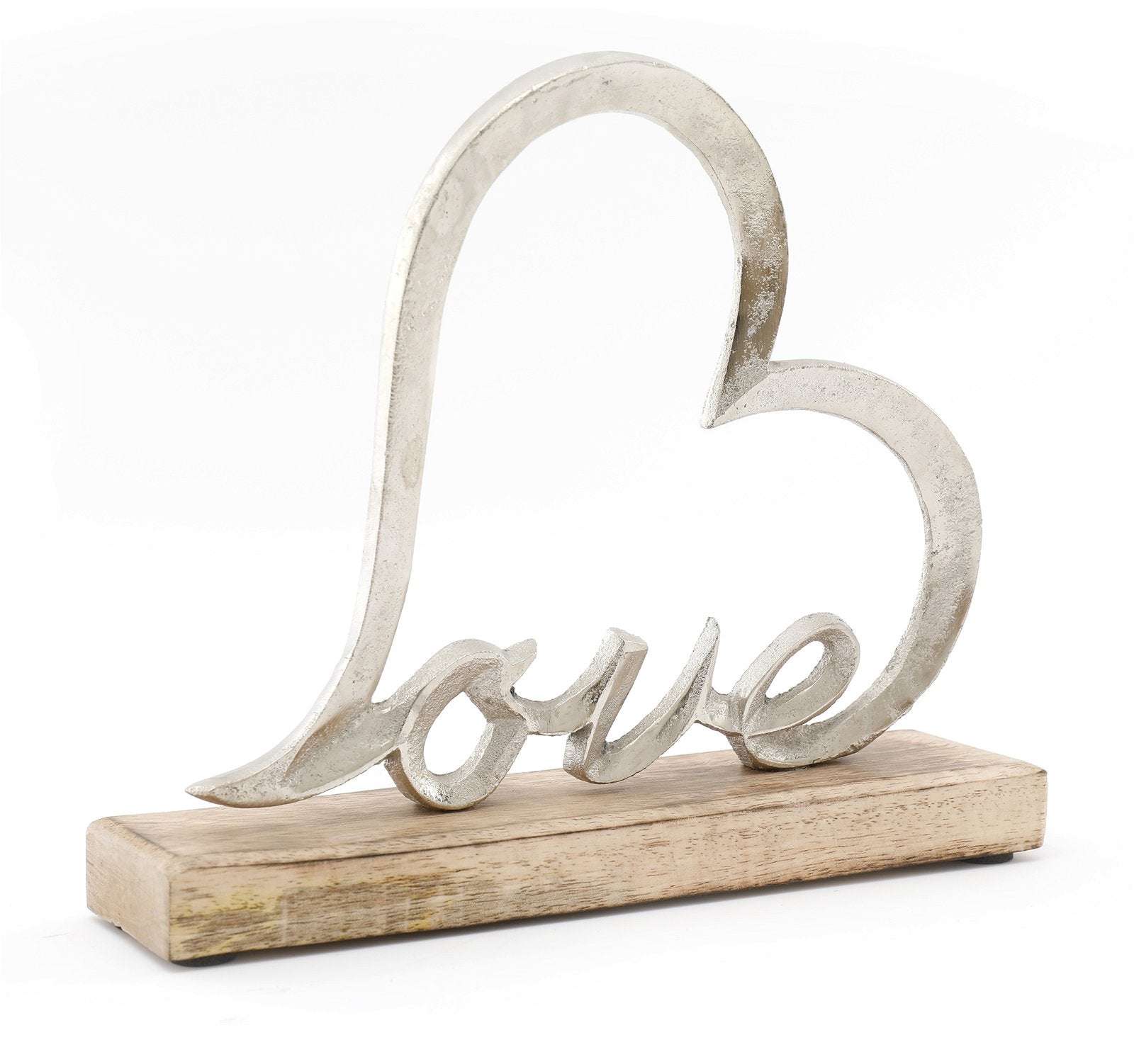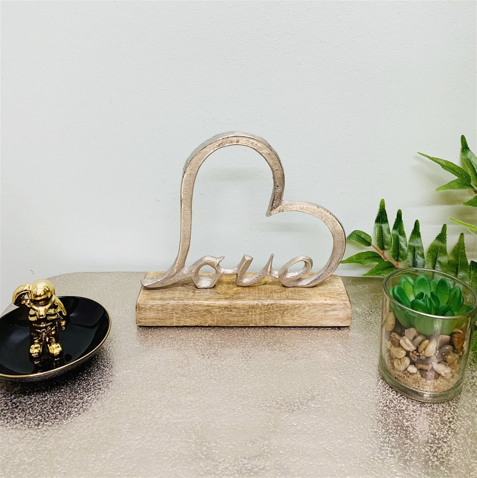 This heart of love decoration would sit beautifully in any home. The silver colour gives a soft contrast to any backdrop with reflects the elegant lettering. The wooden plinth measures 19.5 x 6 x 2.5cm with the heart measuring 15.5cm in height. Overall measurements are: D5.5 x H18 x W20cm SKU: OR1711