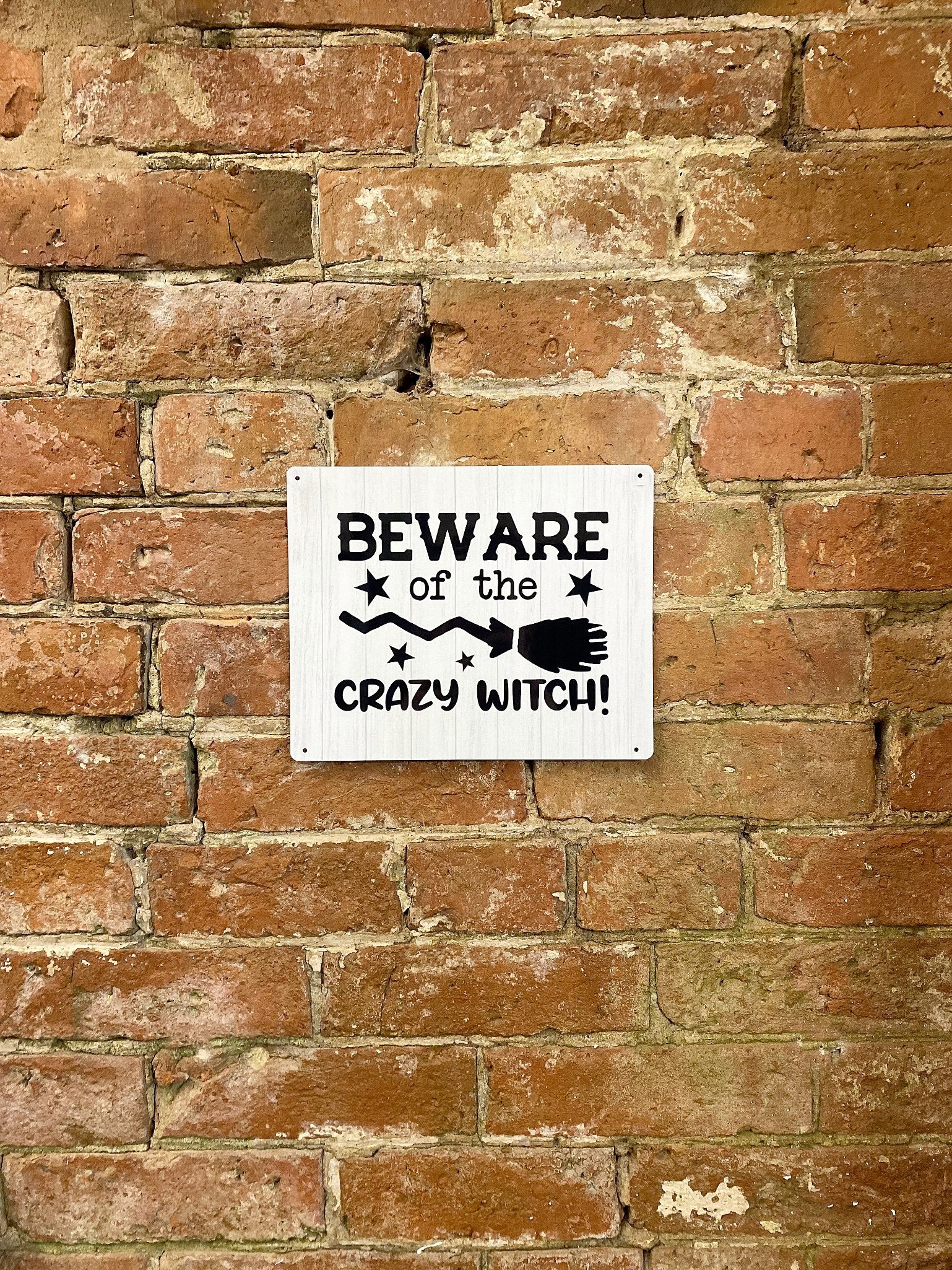 Part of our fantastic range of reproduction vintage metal signs. Beware of The Crazy Witch sign. Made in the UK from aluminium, suitable for use inside or outside. Every poster features 4 drill holes for ease of fixing to the wall. Measurements: D0.1 x H25 x W20cm