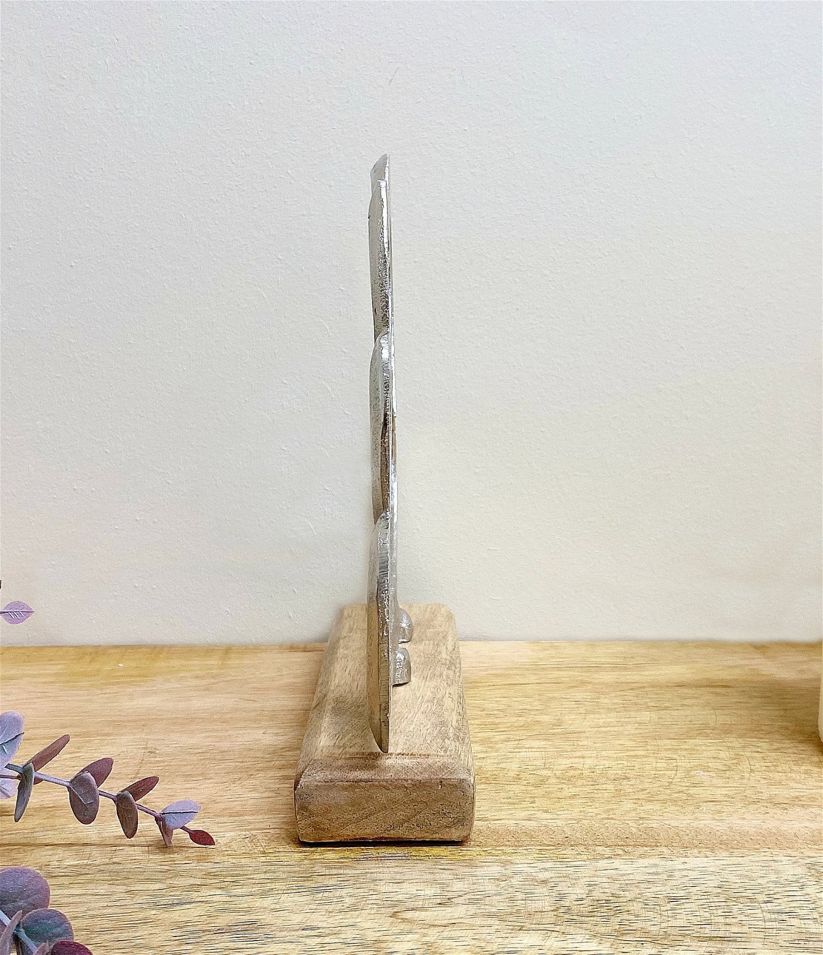 The silver heart ornament is mounted on an attractive mango wood base, and stylishly embellished giving it a lovely shabby chic feel. A truly beautiful home accessory that will blend well with a range of interiors. Measurements: D5 x H19.5 x W21cm