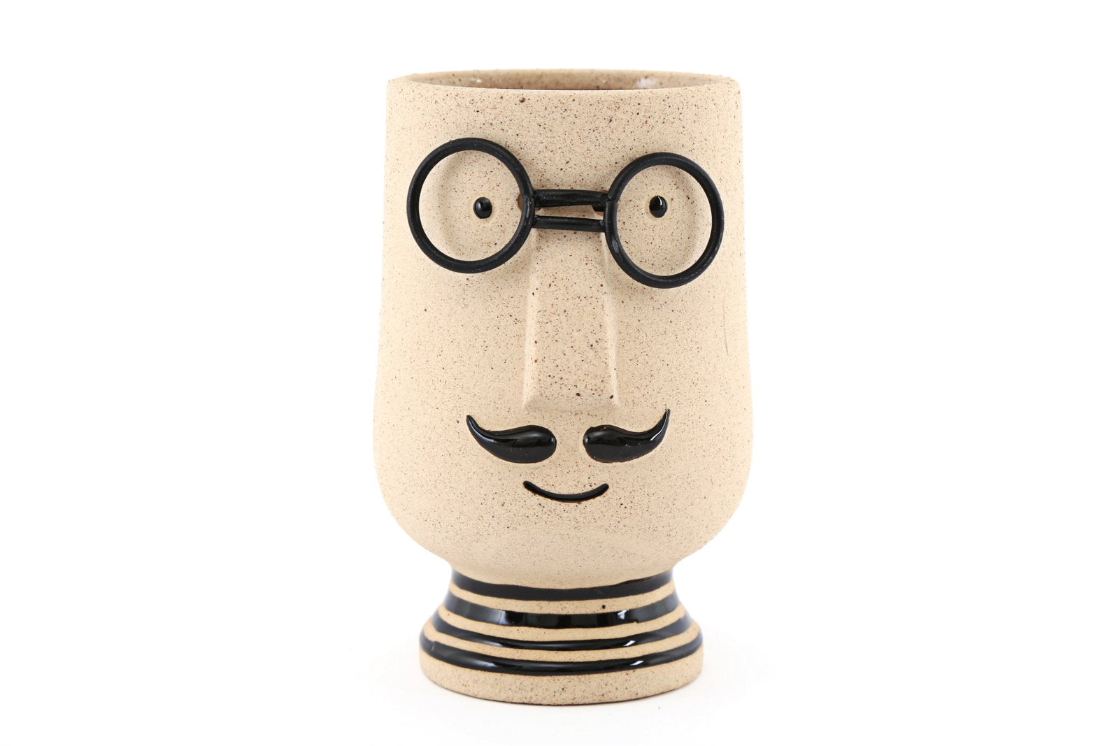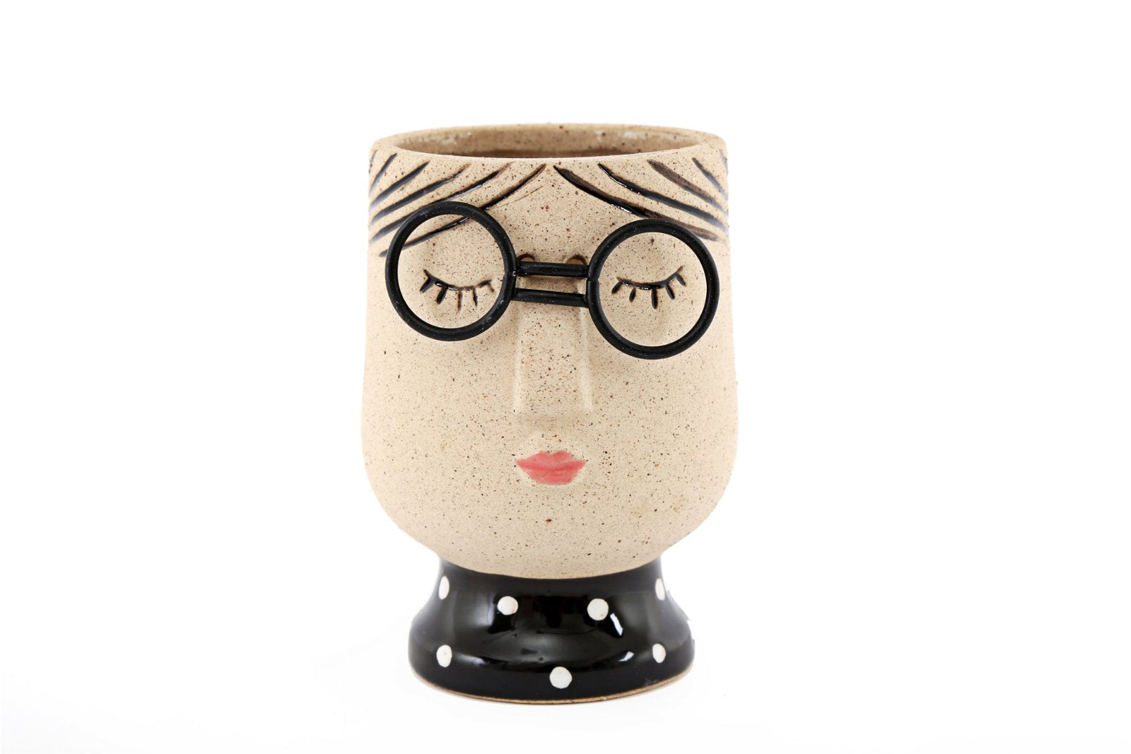 Mr and Mrs planters are a set of two planters that are designed to hold small plants or succulents. These planters are often used as a decorative accent in the home and make for a charming gift for newly-weds, as they feature a playful nod to marriage. Made from dolomite, the Mr and Mrs planters can be used inside or outside. Measurements: D7 x H11.5 x W7cm